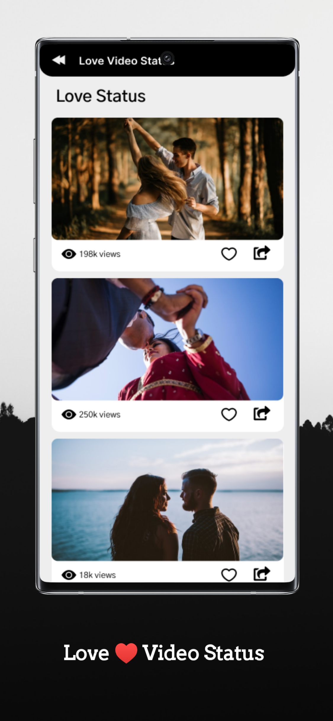 status video 2023 is one of the best app for video status app is for Whatsapp status save and for the status of short 30 second status videos which is suitable to status for on Whatsapp and Instagram Status and Story directly and other social media. 💗 Love status video for whatsapp has a large Collection of best Status Videos Songs for WhatsApp. Set your WhatsApp Status Video according to your emotion and mood. Tamil Video Status Song is available in short size 30 sec with the best quality. ⚡ You can download all kinds of lovely, music, funny snake video, and moj status and share them directly in your WhatsApp Status. Use Vidstatus to create new trending short moj video status for WhatsApp: birthday video status, funny snack video status, takatak video status, share chat video status, Emotional Status, Attitude Status, Miss You Status, lovely video status… ✅ Features Of The App :- ✅ Easy to use: Best user interface and experience with video status app.Just open Status video app and you will get latest uploaded video status and popular status ap. 🔥 Explore Category : status videos By Category, there are a large collection of status video category to according user like it category status is. ⚡ Category video status : ⚡ Love video status video Short Videos status Animated status video sad video status trending clips status video Romantic Status video 30 sec status video Emotional Status video Wishing Status video Breakup video status Funny status video Good Morning status video Good Night status TV Serial status video Wedding status video Happy Birthday status video Video Song For Whatsapp status Breakup Status video Lyrical Status video miss you Status video Hindi status video Gujarati status video Punjabi status video Festival Status video and Many More. ★ Multiple Language : Would you like to download free status video in Hindi, Gujarati, Marathi, Tamil, Telugu, Kannada, Bengali, Malayalam and many more status video. ★ Latest video status: We are update the daily status video so you will never out of latest status or story videos to upload on Facebook, Instagram and Whatsapp status. ★ Popular Videos: This video status category shows to most popular on Whatsapp status videos are currently trending in India and are being popular by multiple people. ★ Share Videos: Download & Share status video in high, normal, and low quality with your friends and other social networks and people. ★ Search Videos: You will search the specific status video status, video song, artist, movie, language and category name just hit and the search button and find it. ★ Fast Download : Our high-speed server gives you Fast Downloading Experience. Download unlimited status video for FREE. you can download any video for free within a few seconds. Once downloaded, you can show your Favourite video mark and to your friends and family by sharing on WhatsApp and Facebook. ★ Small Size : Small size video download, so save your internet data and save your mobile memory. Videos are available in short size with the best quality. Our servers are super fast to give you fastest downloading speed and the small size of the video also helps you to upload quickly. ★ Data Usage : Small size video so save your data usage and get fast response. ★ Upload Status: You can upload your video status from a phone status video. ★ Like Video : Whatever video you want to like then you will liked the videos. ★ Follow : You can follow the user and see the following also like social media. ★ Something New Everyday : We are uploading new video status everyday, you will get a also notification of latest videos and add new video status also. ★ whatsapp status saver : You can save the whatsapp status and video and story also create or make. 🎉 Explore daily funny & takatak short video status for WhatsApp, best WhatsApp video status app and lovely video status maker in India, will bring you endless fun! Hope you like Video Status🤩