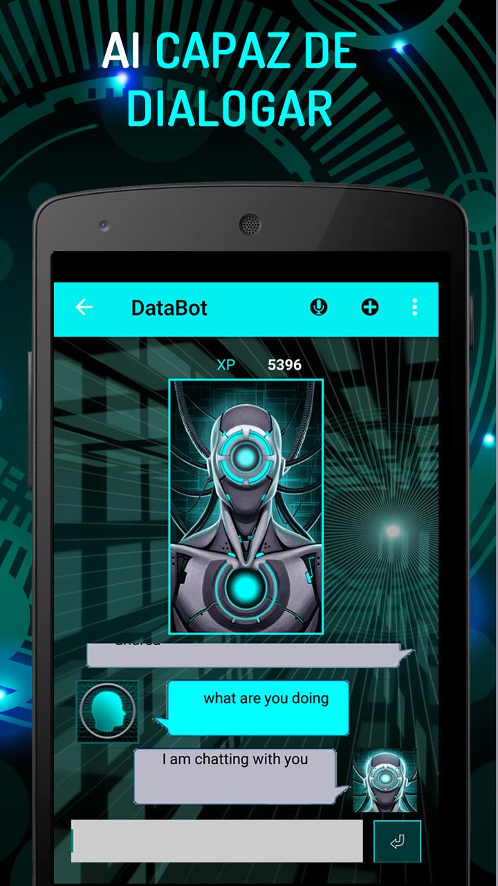 ¡Asistente DataBot es la aplicación de inteligencia artificial más avanzada para Android! Pregúntele a IA lo que quiera, como Jarvis, el asistente responde con su voz a sus solicitudes sobre el tema que le interesa. Las aplicaciones y servicios integrados dentro de la inteligencia artificial de su asistente le devuelven imágenes, búsqueda por voz y presentaciones multimedia. CARACTERÍSTICAS IA Asistente ★ inteligencia artificial para celular gratis en español ★ Busca e identifica los elementos solicitados ofreciendo una breve descripción. ★ Crea presentaciones multimedia usando voz, texto e imágenes. ★ Responde a preguntas específicas. ★ Chatea con IA ★ Este asistente virtual responde a preguntas específicas usando google, wikipedia, feed rss y búsqueda web ★ Crea notas de resumen conteniendo la respuesta solicitada, detalles relacionados, material, servicios y enlaces. ★ Permite compartir fácilmente los resultados mediante Agenda, SMS, correo electrónico y redes sociales. ★ Personaliza tu Inteligencia artificial según tus preferencias: idioma, voz, nombre, comportamiento. Construye tu propio bot, como Jarvis. ★ Inteligencia artificial (IA) es multiplataforma: puedes usar asistente personal en smartphone, tablet o portátil. ★ Habla tu idioma - DataBot es capaz de hablar en español, inglés, francés, italiano, alemán, portugués. ★ Es capaz de charlar con los humanos. En cada sesión de chat, aprende nuevas palabras. Mejora tus habilidades de asistente inteligente usando actualizaciones gratuitas o compradas. El asistente virtual gana experiencia mientras lo usa. La experiencia es un método gratuito para obtener utilidades disponibles en la tienda o recompensas exclusivas para su asistente. LISTADO COMPLETO DE UTILIDADES ★ DICCIONARIO ★ SECRETARIA y AGENDA: asistente agenda gestiona listas de compras, recordatorios, citas, alarmas. ★ HORÓSCOPO ★ NOTICIAS ★ BRAIN TRAIN ★ TEMÁTICOS (8): identifica, presenta, ofrece servicios de búsqueda en la web y responde a preguntas específicas o peticiones sobre PERSONAS, PERSONAJES FICTICIOS, PELÍCULAS Y SERIES DE TV, CIUDADES, PAÍSES, CLUBES Y SELECCIONES DE FÚTBOL, LIBROS FAMOSOS (Sources: wikipedia, wikiquote, google, feed rss, internet) ★ SONIDOS ★ CHISTES ★ ADIVINANZAS ★ CITAS ★ CALCULADORA VOCAL ★ REPRODUCTOR DE MÚSICA ¡Crea tu propio bot virtual como jarvis y disfruta Inteligencia artificial!