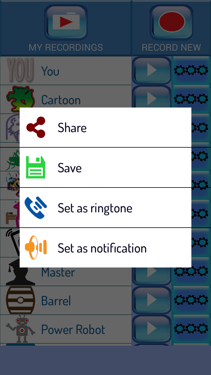 ♫ Cambiador de Voz♫ > Mejora tus habilidades de humor en el siguiente nivel mediante el uso de esta aplicaci gratuita incre兊le. > Hacer sonidos divertidos aplicando efectos especiales en sus voces grabadas en el tel馭ono. > Crear un mont de combinaciones frescas de sonidos e impresionar a sus amigos. > Modificar el sonido con efectos ♫ Cambiador de Voz ♫ y compartirlo o Twitter, Facebook, correo electrico. caracter﨎ticas: ♫ Muchas voces para elegir y divertidos efectos de voz ♫ sonidos ambientales ♫ velocidad discurso Cambio ♫ juego instant疣eo de la voz modificada ♫ Grabar sonido, guardar, escuchar y compartir ♫ cambiador de voz divertido ♫ Establecer como tonos de llamada ♫ divertido tono gratis ♫ Establezca su voz como la notificaci ♫ registros Prank ♫ El programa ♫ Cambiador de Voz♫ es en general muy simple y tambi駭 puede ser divertido para jugar. Adem疽 de usar con grabadoras de audio, tambi駭 es posible crear una voz falsa. Disponible voz y efectos de sonido: normal, globo, azufre, que, avispa, t佖el, borracho, ventilador, los nis, de la liturgia, de la historieta, horror, asustadizo, el cic, hombre de las cavernas, tel馭ono, cipi-ripi, r疳ido, kilimanjaro, protesta, cementerios, pitufo inteligente, submarino, la polic僘. Cambio de voz incluyen voz m匇ica, cambiar las voces en las canciones para los nis y los nis. ♫ cambiar las voces de voces en off y otros proyectos de audio. Establezca su r馗ord a tono. Elija entre nuestra lista de efectos vocales predefinidos o personalizar su experiencia de cambio de voz mediante la combinaci y efectos tales como el tono de apilamiento y el eco para crear su propio efecto de voz 佖ica. Registre ti mismo y luego cambiar su voz. En cuanto a las caracter﨎ticas de la aplicaci, mediante la descarga de los usuarios de la aplicaci tendr�la colecci of theiselves viejos tonos de llamada de tel馭ono y nuevos tonos sience de ficci en sus dispositivos. Todos los sonidos se pueden establecer como tonos de llamada. Aplicaci de sonido tiene docenas de efectos de sonido gratis para todo el mundo. ♫ Estos efectos no ser疣 tan eficaces como los de coro o flanger efectos reales, como se fijar疣 los par疥etros de retardo y no va a cambiar con el tiempo. El fundido de salida y opci de recortar es una funci combinada que se desvanece en la selecci y luego marca el final de la selecci como el final del archivo. Este se utiliza con frecuencia en el extremo de pistas de m俍ica. Los cambios normales de velocidad cambia el tono de forma proporcional a la velocidad. Si desea cambiar la velocidad, pero mantener el terreno de juego el mismo uso de esta funci.