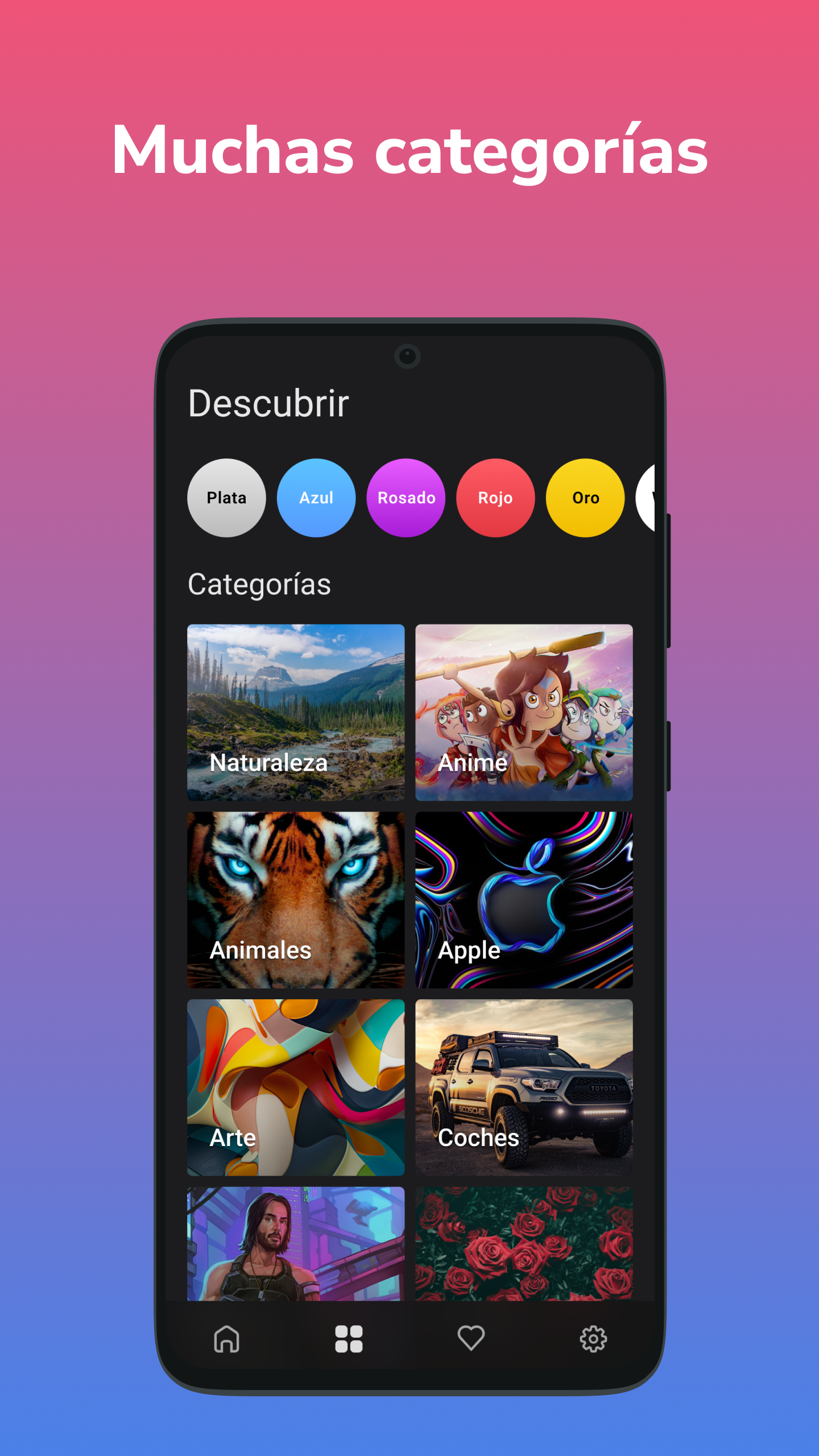 Wallgram es una gran colección de fondos de pantalla gratuitos para cualquier dispositivo Android. Nuestra colección tiene más de 50,000 imágenes de alta calidad que puedes descargar e instalar en tu pantalla de inicio o pantalla de bloqueo de forma gratuita. La aplicación Wallgram detecta el modelo y la resolución de tu teléfono para mostrar solo fondos de pantalla adecuados para tu teléfono. Gracias a este enfoque, no necesitas recortar las imágenes para que se ajusten a su pantalla, ¡ya hemos hecho todo por ti! Fondos de pantalla de alta calidad: HD, 4k, 8k. ¡Nuestro principio fundamental es la calidad! Publicamos exclusivamente fondos de pantalla en perfecta calidad para que puedas disfrutar solo de los mejores fondos de pantalla en tu dispositivo. Sin cuadros ni imágenes borrosas, ¡puedes disfrutar de cada píxel de las imágenes! Fondos de pantalla en la pantalla de bloqueo En nuestras colecciones, hemos recopilado imágenes de la más alta calidad. Encuentra los que más te gusten y configura tu pantalla de bloqueo. Con el cambiador automático de fondos de pantalla, no te limites a una sola imagen en la pantalla de bloqueo. Cambio de fondo de pantalla automático Con Wallgram, puedes configurar un cambiador de fondo de pantalla automático en tu teléfono de una manera fácil y sencilla. La aplicación puede cambiar automáticamente el fondo de pantalla en la pantalla de inicio, la pantalla de bloqueo o ambas pantallas a la vez. Simplemente especifica el intervalo de tiempo deseado y selecciona la categoría desde la que deseas configurar el fondo de pantalla. Todos los fondos de pantalla se clasifican en más de 40 categorías: Abstracción, Oscuro, Coches, Animales, Anime, Naturaleza, Texturas, Chicas, Minimalismo, Música, Películas, Dibujos animados, Montañas, Espacio, Verano, Invierno, Otoño, Primavera, Arte, Aviación, Ciudades, Motocicletas, Multicolor, Año nuevo, Flores , Gráficos y otras…