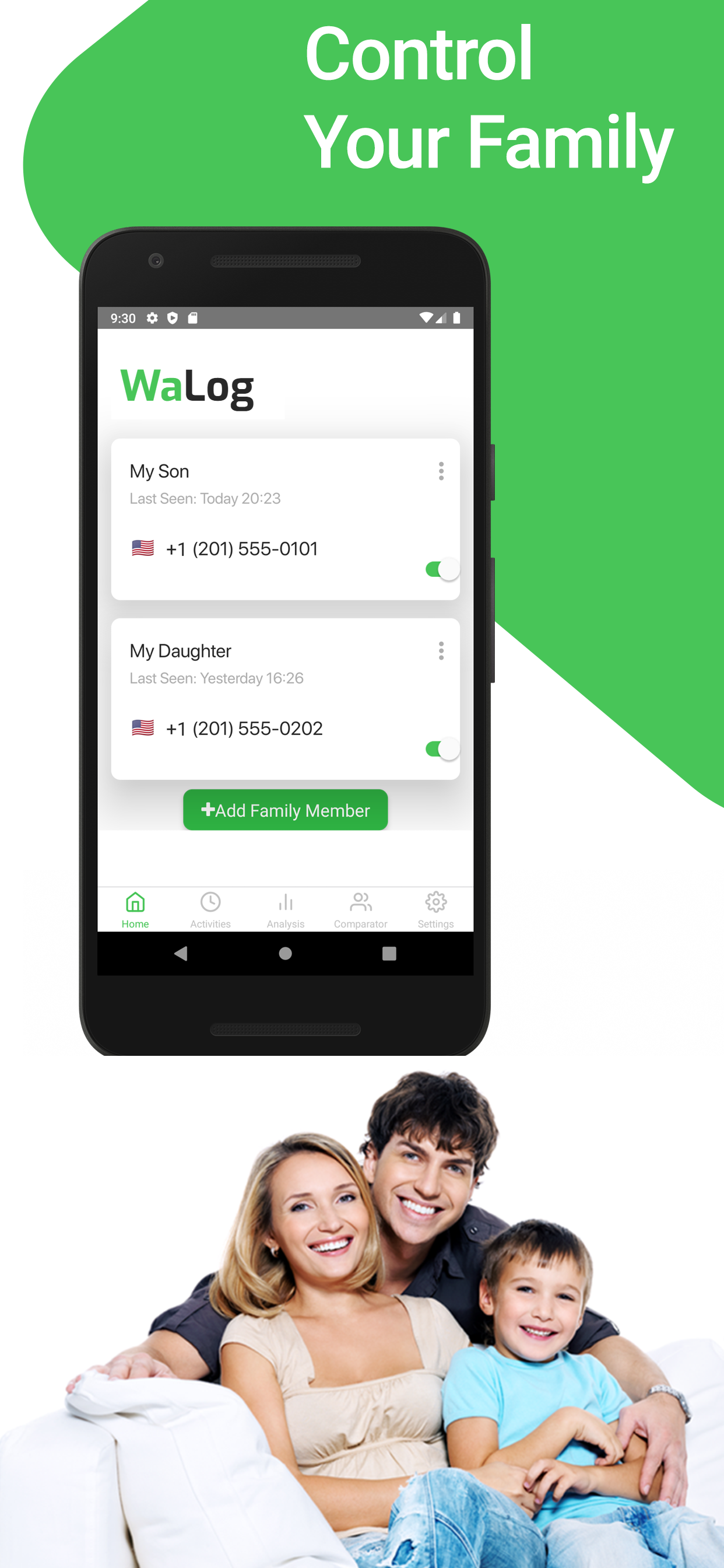 ¿Quieres medir el tiempo en línea y fuera de línea de tus hijos? Puede medir el tiempo en línea y fuera de línea. Puedes controlar el tiempo por día, semana y mes. Una aplicación que trabaja para usted 24/7. Puedes recibir notificaciones cuando quieras. Todos pueden usar esta aplicación con su facilidad de uso. Está un paso por delante con el historial de notificaciones y el análisis detallado. Puede comparar tiempos en línea usando la función de comparación. Puede recibir notificaciones en línea/fuera de línea. Hay muchas opciones para agregar miembros de la familia. Nuestro equipo siempre está listo para servirle con soporte completo las 24 horas, los 7 días de la semana. Puede comparar dos números diferentes
