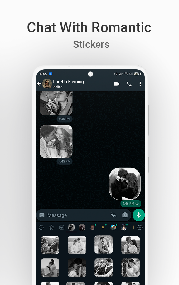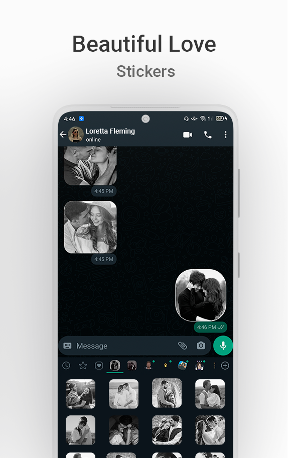 Una forma diferente de compartir tus sentimientos a través del paquete de pegatinas Ultimate Romance, envía pegatinas lindas, de amor y besos a tu amante y amigos con la nueva aplicación Romentic Couple Love Sticker. Nuestro chat de pegatinas románticas para el amor le permite mostrar su amor y preocupación por los especiales.