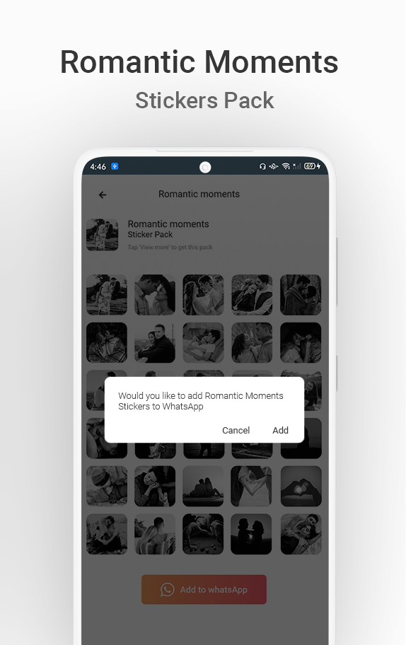 Romantic Sticker te trae el mejor WASticker para agregar un toque colorido en tu chat diario con puros stickers románticos. Dale a tu romance una sensación especial usando pegatinas románticas y coquetas de WAStickerApp. Estas pegatinas románticas de chat de amor te ayudan a sentir tu amor de la mejor manera posible. ¿Qué más es más expresivo que las adorables pegatinas? Es por eso que le ofrecemos una gran colección de pegatinas WA para elegir. Haz que tu amor sea más feliz enviando estas hermosas pegatinas de pareja romántica. Celebra el amor y difunde el amor en el mundo social compartiendo estas románticas pegatinas para whatsapp.