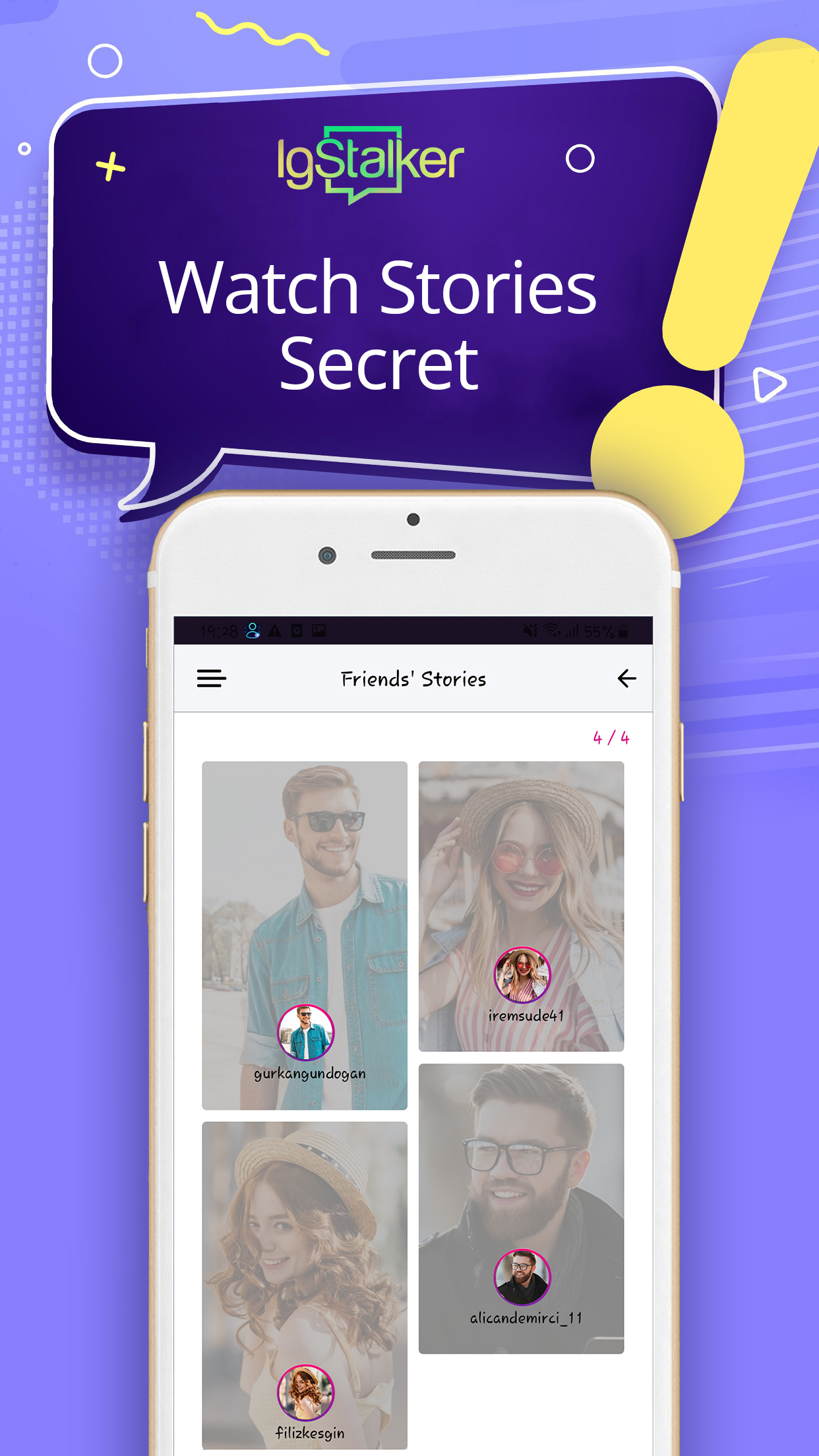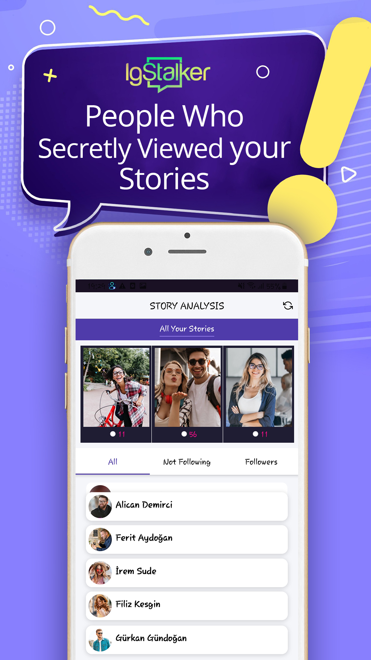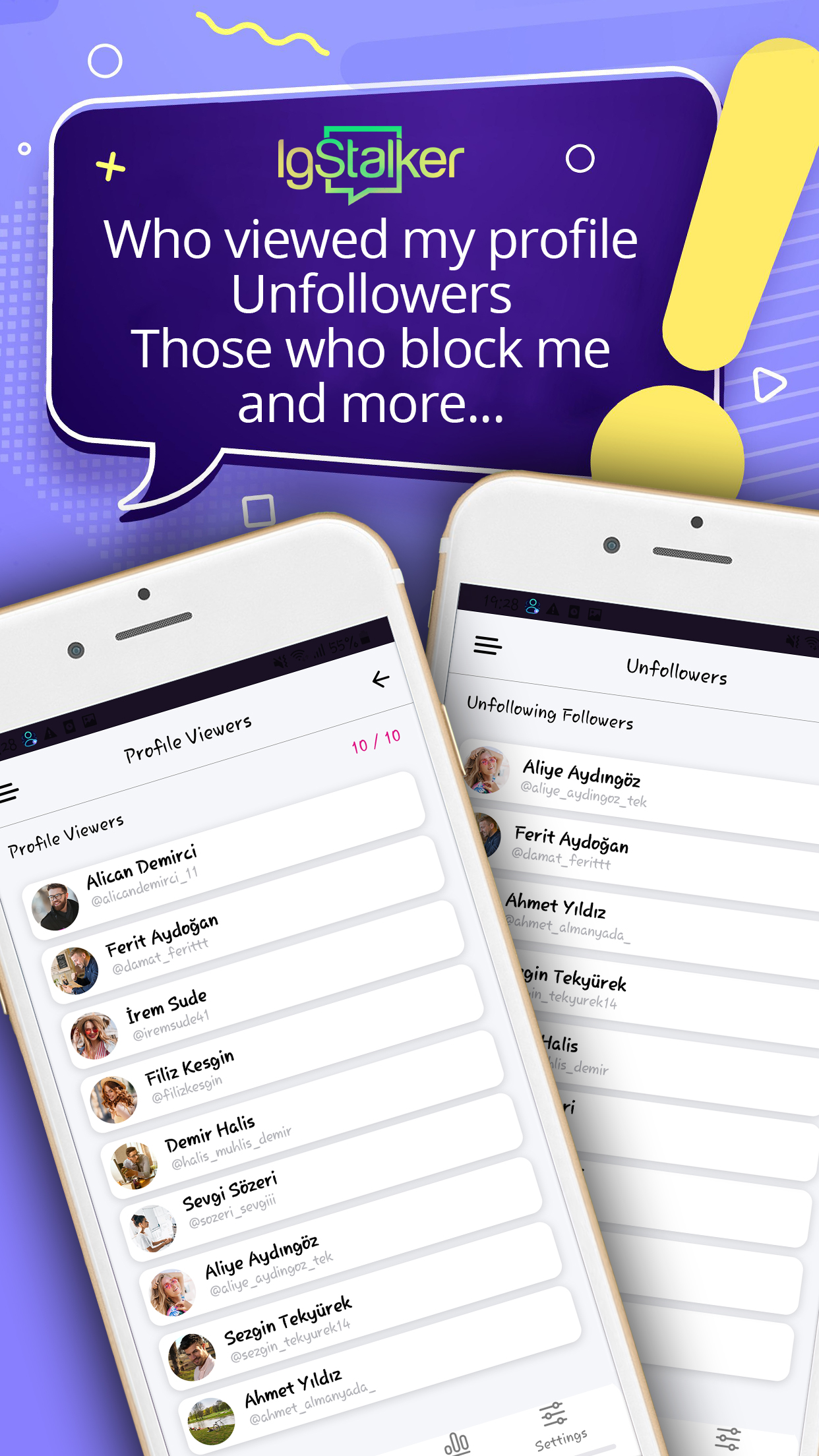 ¡Puedes detectar quién visitó tu perfil y quién te bloqueó! 👀 Con IgStalker puedes averiguar instantáneamente quién vio y dejó de seguir tu perfil, gracias a nuestra aplicación. Recibe notificaciones instantáneas cuando alguien te bloquea. Descubra los fans ocultos de su perfil y obtenga estadísticas sobre su perfil. Informes del visor de perfiles de Instagram y Vea historias de forma anónima con la función de seguimiento de historias ocultas. Reciba notificaciones instantáneas cuando alguien haya acechado, dejado de seguir o bloqueado su perfil con nuestras notificaciones instantáneas. Características clave ◉ Ver quién vio mi perfil durante el día ◉ ¿Hay alguien bloqueándome o dejando de seguirme? Descúbrelo ahora. ◉ Su análisis de perfil se muestra en gráficos ◉ Análisis y evaluación del desempeño posterior ◉ Explore y administre sus medios por popularidad ◉ Mira historias compartidas por seguidores en privado ◉ Story Saver para Instagram (HD) ◉ Descargador de imágenes de perfil (HD) ◉ Aumente su popularidad actualizando sus publicaciones ◉ Elimina los perfiles que no sigues de tu lista ◉ Si tienes curiosidad por los fans ocultos y mucho más ◉ Descubre quiénes son tus mejores amigos de Instagram ◉ Seguimiento de aumento / disminución de seguidor Funciones de análisis de historias ◉ Historias más vistas ◉ Las historias menos vistas ◉ Los seguidores que más vieron tu historia ◉ Seguidores que vieron menos tu historia ◉ Aquellos que ven tu historia sin seguirte Utilice esta aplicación de búsqueda de perfiles de Instagram y comuníquese con todos los perfiles que desee. Descargue su imagen favorita en cualquier nicho en particular con un solo toque.