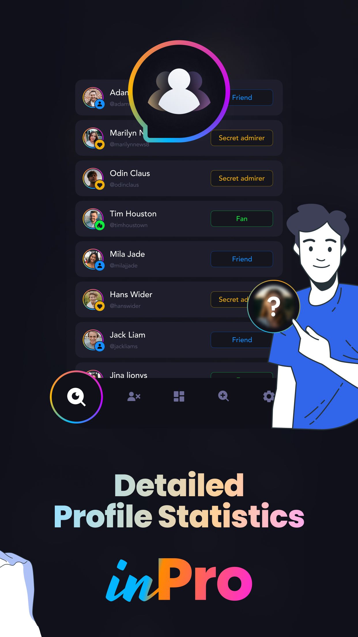 Si te preguntas quién está mirando mi perfil, ¡InPro es para ti! Puedes identificar instantáneamente quién mira tu perfil👀 A quién puede descubrir tu fan ahora.