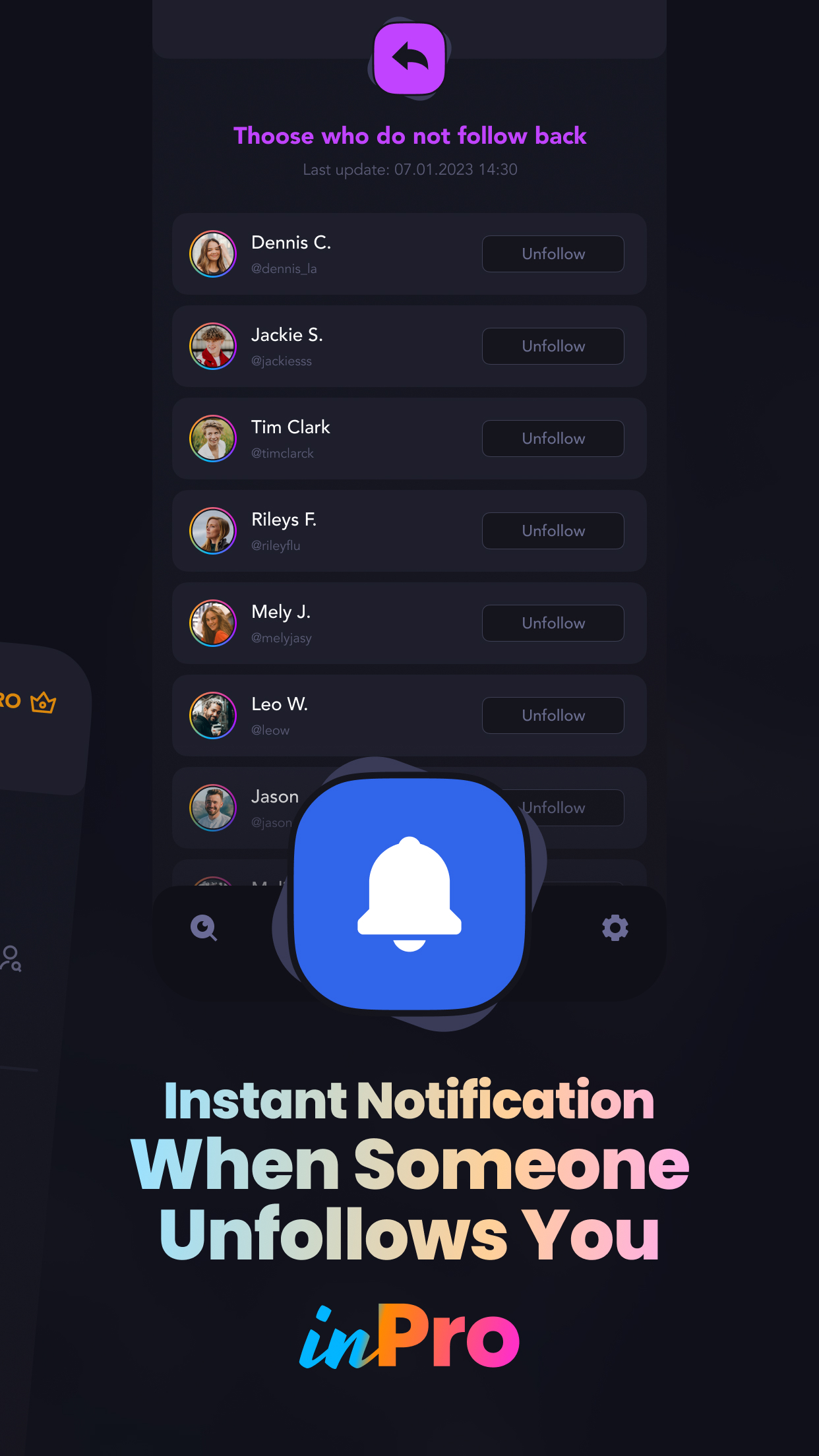 InPro es una aplicación de análisis de perfil multipropósito que le brinda control total en el análisis de seguidores al acceder a información detallada de Instagram.