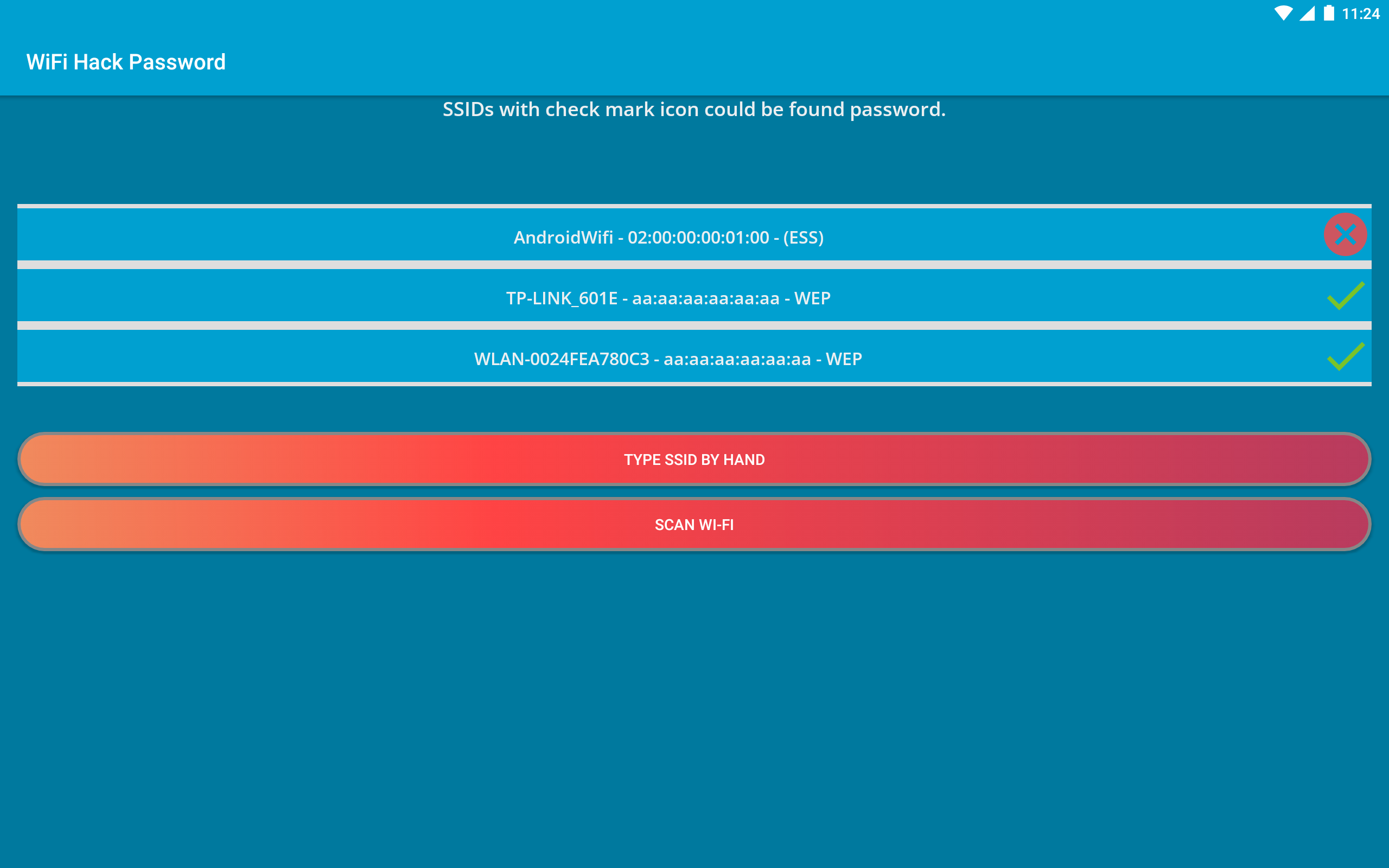 Esta aplicación puede recuperar claves WPA predeterminadas de marcas específicas de enrutadores. Con esta herramienta puede probar la seguridad de su red. En caso de que consigas conectarte a una red distinta a la tuya, debes informar al propietario para que esa persona cambie la contraseña. Encuentre algunas contraseñas de enrutadores compatibles, pero no hay garantía de que la contraseña funcione para todos los enrutadores, incluso si es compatible. Puede escribir solo SSID para encontrar una contraseña posible, pero para obtener mejores resultados, proporcione BSSID y autenticación (WEP, WPA, WPA2). Esta herramienta tiene el propósito de verificar la contraseña wifi. No agrietarse ni piratear. Algunos de los enrutadores admitidos son Thomson, Infinitum, Tp-link ... Compruebe todos los enrutadores compatibles: https://4nyp0m0n05.wordpress.com/2021/10/01/supported-routers-list/ Esta aplicación no es para descifrar o piratear ningún tipo de contraseña de Wi-Fi si se trata de un mal uso de esta aplicación, el desarrollador no será responsable.
