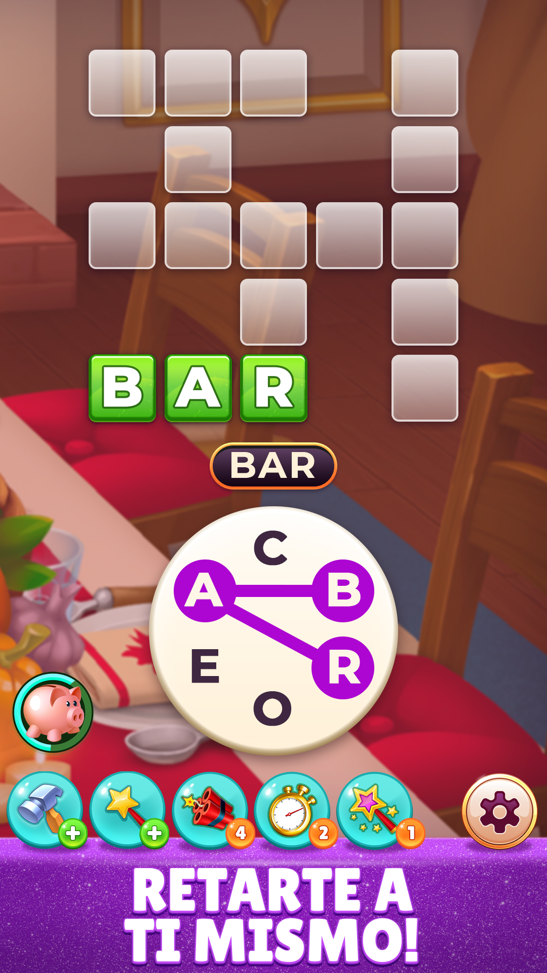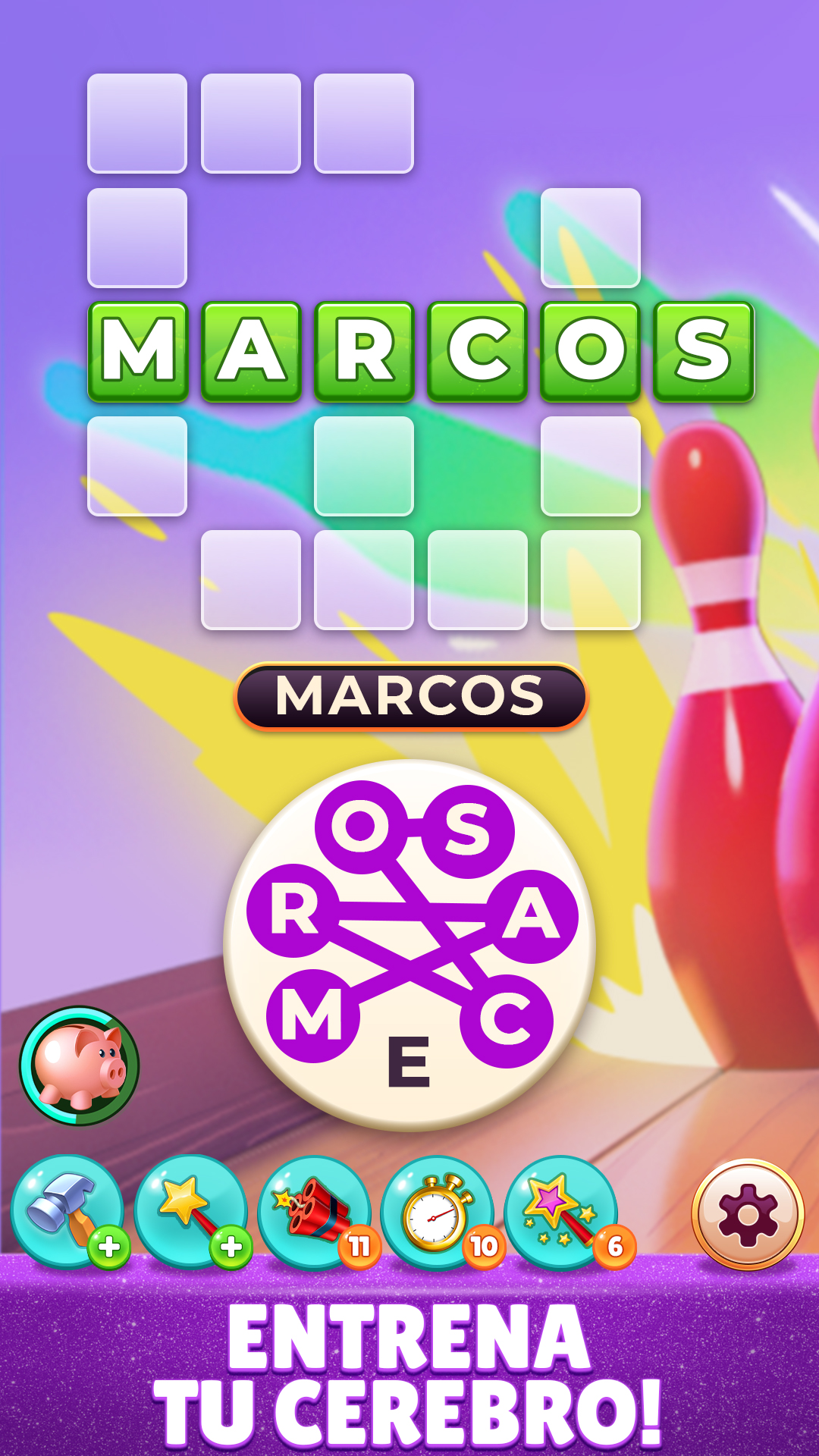 Impulsores: si alguna vez tienes problemas para resolver un puzzle de palabras, toca los fuegos artificiales o el martillo para revelar las letras del puzzle, o haz estallar una palabra completa con dinamita. No olvides que la varita mágica también está a solo un toque de distancia.