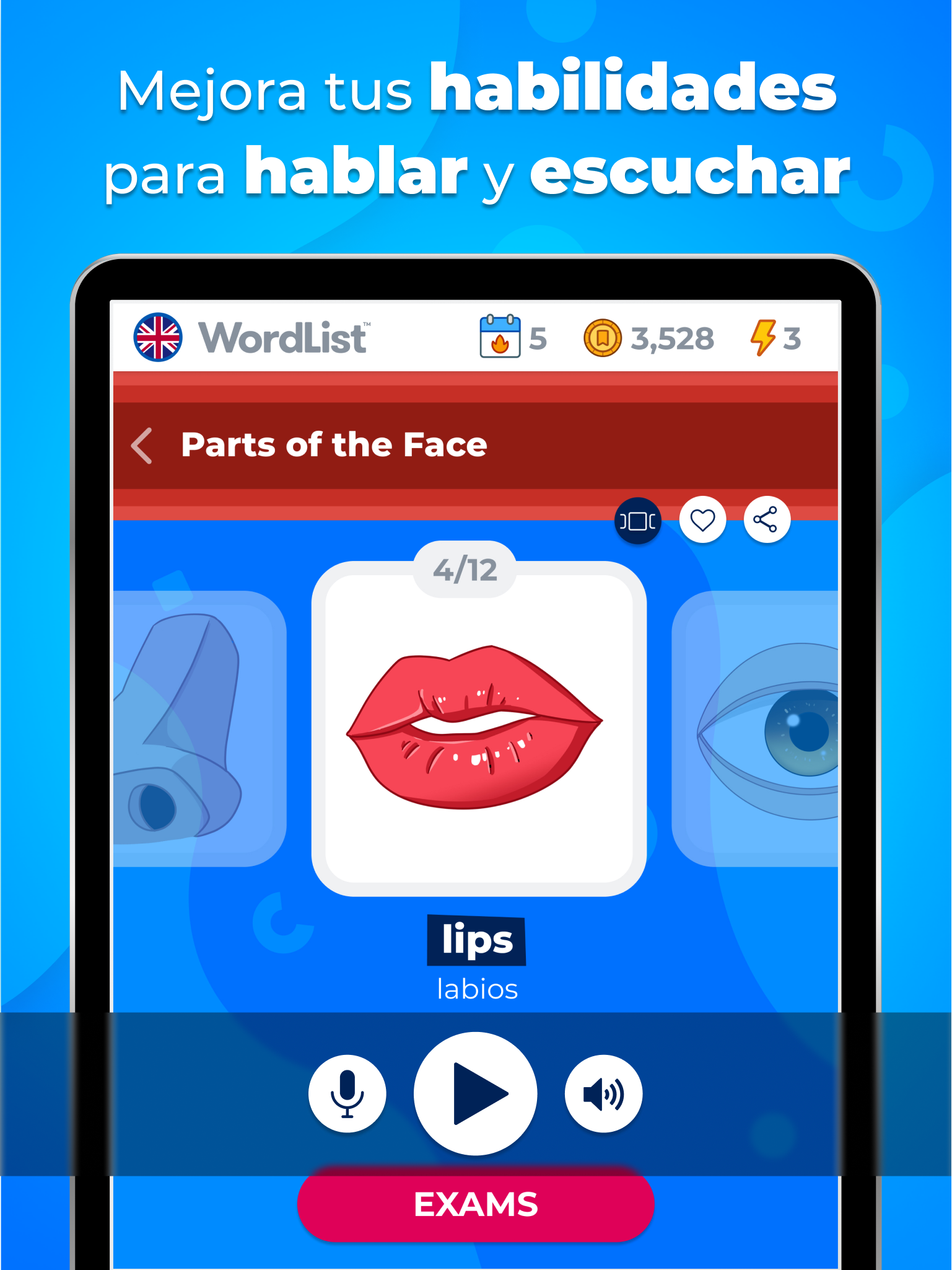 Aprende Inglés, Español, Francés, Italiano y Portugués con Flashcards. WordList simplifica el aprendizaje de idiomas con más de 12 000 tarjetas didácticas, vocabulario y audios para ayudarle a aprender y practicar. Cada imagen se ha creado especialmente para ayudarte a memorizar vocabulario nuevo.