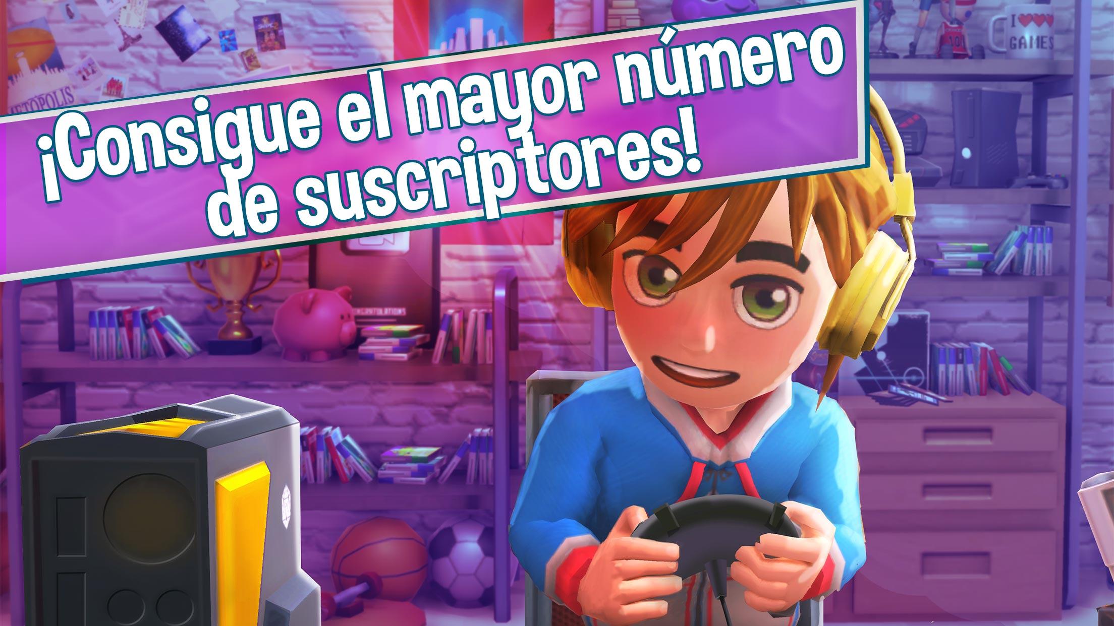 ATENCIÓN: Este juego necesita al menos 600Mb de espacio libre en su dispositivo o puede experimentar problemas de ejecución. Ser un youtuber famoso es el sueño de todos, ahora con Youtubers Life sabrás qué se siente siendo una estrella de Internet. Sumérgete en este simulador para saber cómo es el día a día en la vida de los influencers de YouTube tan famosos como Rubius, ¿de qué tratará tu canal? En este simulador tendrás que administrar tu tiempo para ocuparte de tus obligaciones diarias mientras subes vídeos a tu canal. Al principio será difícil conseguir seguidores, comentarios y likes para tu video blog, pero cuantos más vídeos subas, más rápido se incrementarán. No te vengas abajo por los comentarios de tus suscriptores y alcanza tu objetivo de ser un creador popular y tener una vida de millonario. Antes de montar tu canal deberás crear tu propio avatar. Decide entre una gran variedad de gorras, peinados y camisetas y haz que tu avatar vaya a la moda con la ropa más moderna. Pero ten cuidado, administra bien tu dinero y no hagas compras innecesarias, cada moneda que ahorres te acercará más a tu objetivo: ¡ser millonario! ¡Empieza la verdadera aventura para tener una vida de influencer millonario! Elige el tema de tu canal entre: • Canal de moda: diseña tus propios modelos, personaliza hasta el más mínimo detalle de tu día a día y participa en eventos de moda mientras entrevistas a las top models más famosas. Si eres afortunado, podrás compartir pasarela como un modelo de verdad. ¿Lo tienes todo para ser la próxima estrella en las portadas de las revistas de moda? • Canal de gaming: Graba los mejores gameplays y consigue que otros gamers te sigan. Consigue el mejor pc y compra tus consolas y juegos favoritos para hacer los vídeos más molones. Busca un videojuego geek y critica su jugabilidad, seguro que eso crea un debate en los comentarios. Administra tu dinero para comprar todos los títulos que puedas. ¡Dedica tu blog a los videojuegos y conviértete en millonario! • Canal de cocina: ¡Conviértete en un chef famoso! Sube tu receta favorita o enseña cómo cocinar un delicioso postre. No olvides editar el vídeo para que la comida parezca más sabrosa. ¡Tendrás la oportunidad de trabajar en los mejores restaurantes del mundo! • Canal de música: Haz vídeos de tus ídolos musicales y toca tus temas favoritos. ¡Pronto serás tú el que llene estadios con tus suscriptores! Hoy en día montar un canal popular en youtube no es nada fácil, hay muchos competidores que te robarán patrocinadores, así que administra bien tu dinero para no quedarte sin recursos y poder ir de compras. Si sigues algún vídeo blog, quizás puedas tomar algunos consejos para incrementar tus seguidores y conviértete en el Vlogger más viral. ¿Estarás listo para cualquier comentario de tus fans? Youtubers Life es un simulador que te enseñará cómo es ser una estrella popular de las redes sociales y tener una vida como la de Wismichu. No creas que alcanzar el estrellato es cosa fácil, las responsabilidades de ser un influencer son muy duras, así que administra bien tu tiempo y dinero para ser millonario. No dejes de subir vídeos a tu canal para no perder suscriptores y vete de compras de vez en cuando para actualizar tu vestuario. En este juego de simulación podrás: • Salir de compras y personalizar tu avatar para que se parezca a quien tú quieras • Ser un blogger y transmitir a tus seguidores tu pasión por los videojuegos, la cocina, la música o la moda • Editar vídeos desde tu propio estudio para youtube • Ponerte en el lugar de un millonario de las redes sociales, administrar tu canal y tu vida para volverte viral ¡Conviértete en el youtuber más famoso de tu grupo de amigos y atrae los patrocinadores más conocidos a tu blog!
