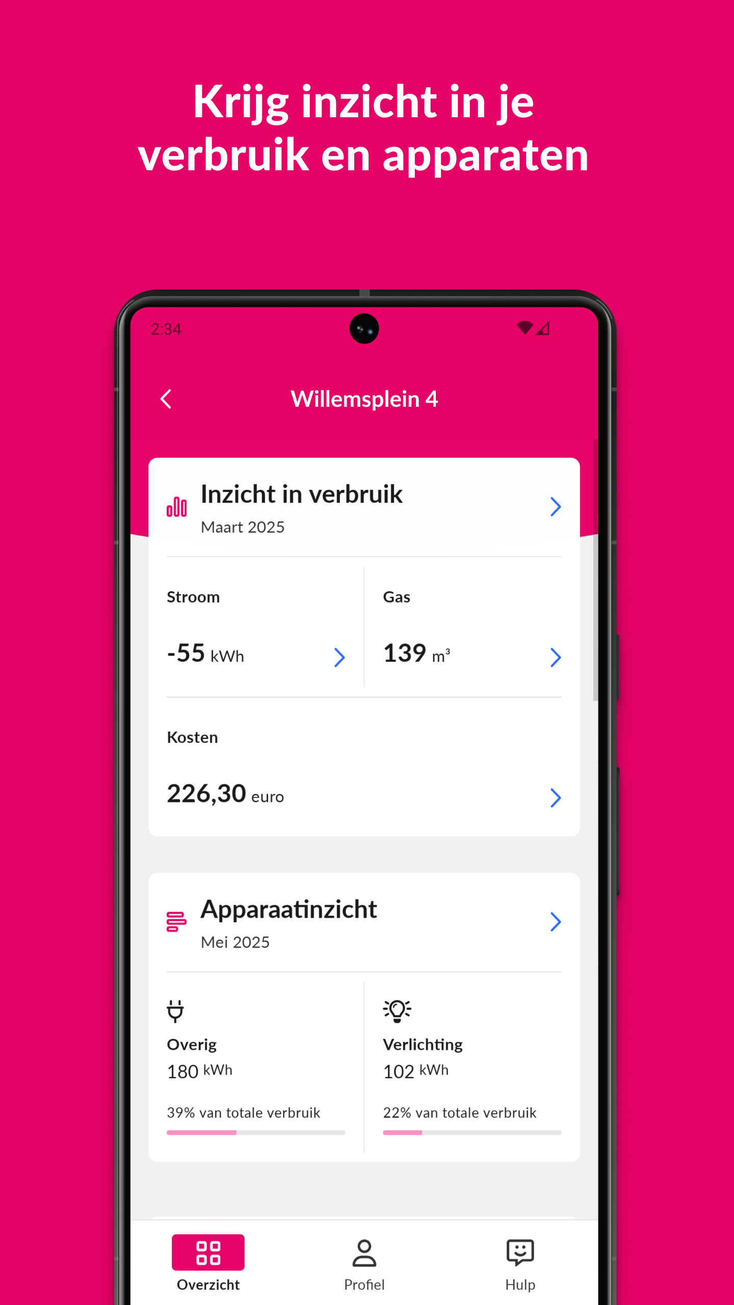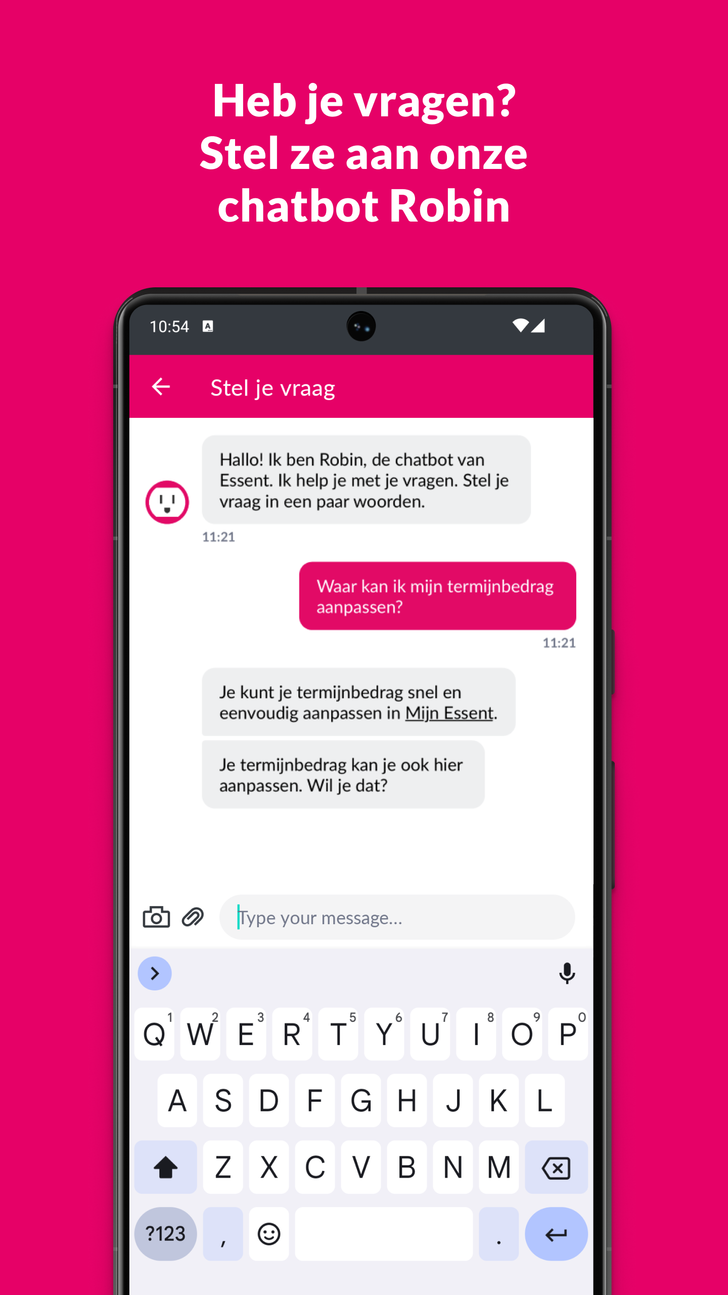You can arrange all your energy matters yourself in the Essent app. Check your usage and adjust your installment amount if necessary. This way you keep control of your costs. And do you have any questions? Ask them directly to our chatbot Robin. A quick overview of the functionalities: * Insight into your consumption You can see your consumption per day, per month and per year at a glance. You also see the costs of your consumption per month and per year. * Easy to arrange yourself You can easily adjust your personal information, such as password, email address and telephone number. And you can view your monthly invoices and annual accounts in the app.