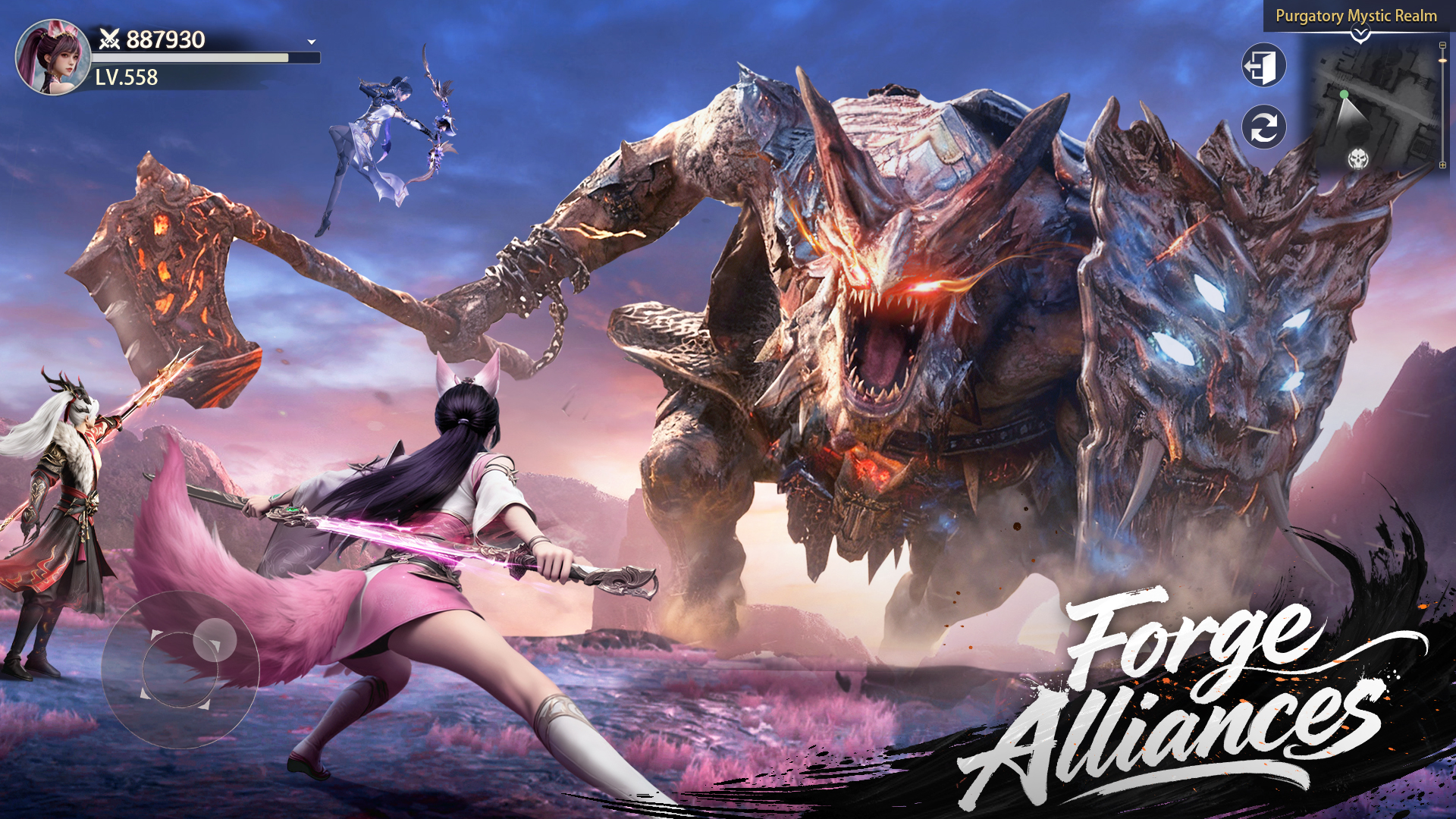 Shan Hai's Splendour, Truly Rendered, Mystic Familiars, Friendship Gendered. Tactical Fights, Where Fortunes Are Spurned, Farm and Flourish, A Life Well Earned. Gather Your Mates, For Epic Boss Raids! [Eternal Sword Pact] is an exquisitely beautiful mobile game inspired by the "Shan Hai Jing" (Classic of Mountains and Seas). Its meticulously crafted world scenes and wonderfully agile spirit characters are all designed from the classic mythological stories found within the "Shan Hai Jing". In ancient times, a great war erupted between the Witch and Demon clans. The Three Sovereigns of the Demon Clan and the Twelve Ancestral Witches perished together. Then, the Great Demon Taihao emerged, uniting the Demon Clan and quelling the chaos. However, the lingering resentment of the Witch Clan attracted the Demon God Xie Tu, who imprisoned Taihao, plunging the Demon Clan into disarray. The Demon God Xuanyuan confronted Xie Tu. Unable to defeat Xuanyuan, Xie Tu suffered a crushing defeat and fled. Yet, Yan Mo, still resentful, impersonated Taihao and ambushed Xuanyuan. Xuanyuan suffered severe injuries, with only a wisp of his soul left to wander through the chaos. And this is where our story begins: Demon Lords will transform into Xuanyuan's lingering soul, embarking on a journey through the mountains and seas to recover memories and weapons..