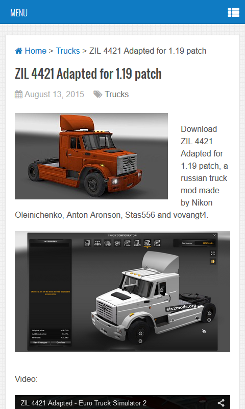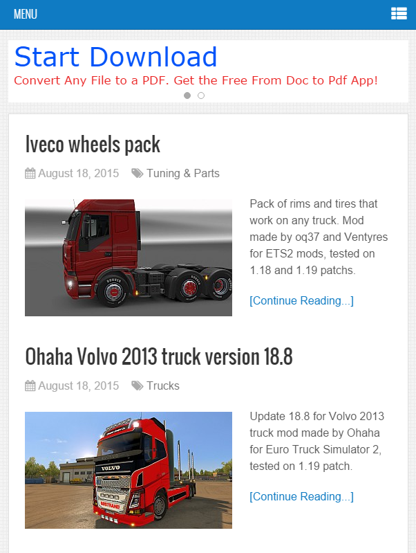 ETS2 Mods (Package Name: org.ets2mods) is developed by Ciprian Chetraruc and the latest version of ETS2 Mods 0.1 was updated on August 18, 2015. ETS2 Mods is in the category of Entertainment. You can check all apps from the developer of ETS2 Mods. Currently this app is for free. This app can be downloaded on Android 2.3.2+ on APKFab or Google Play. All APK/XAPK files on APKFab.com are original and 100% safe with fast download.