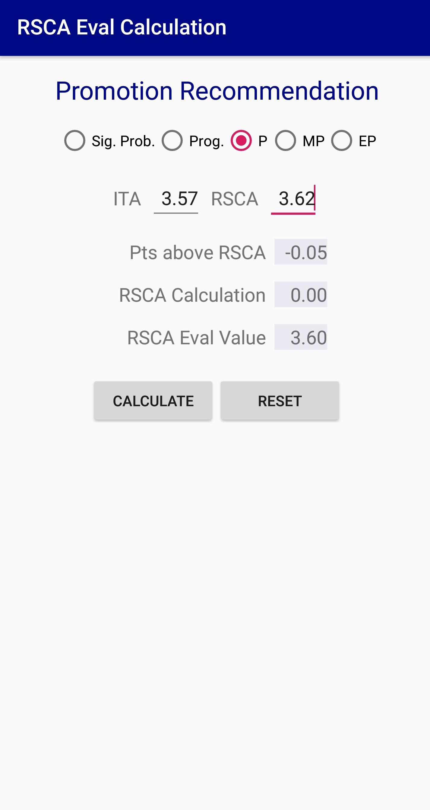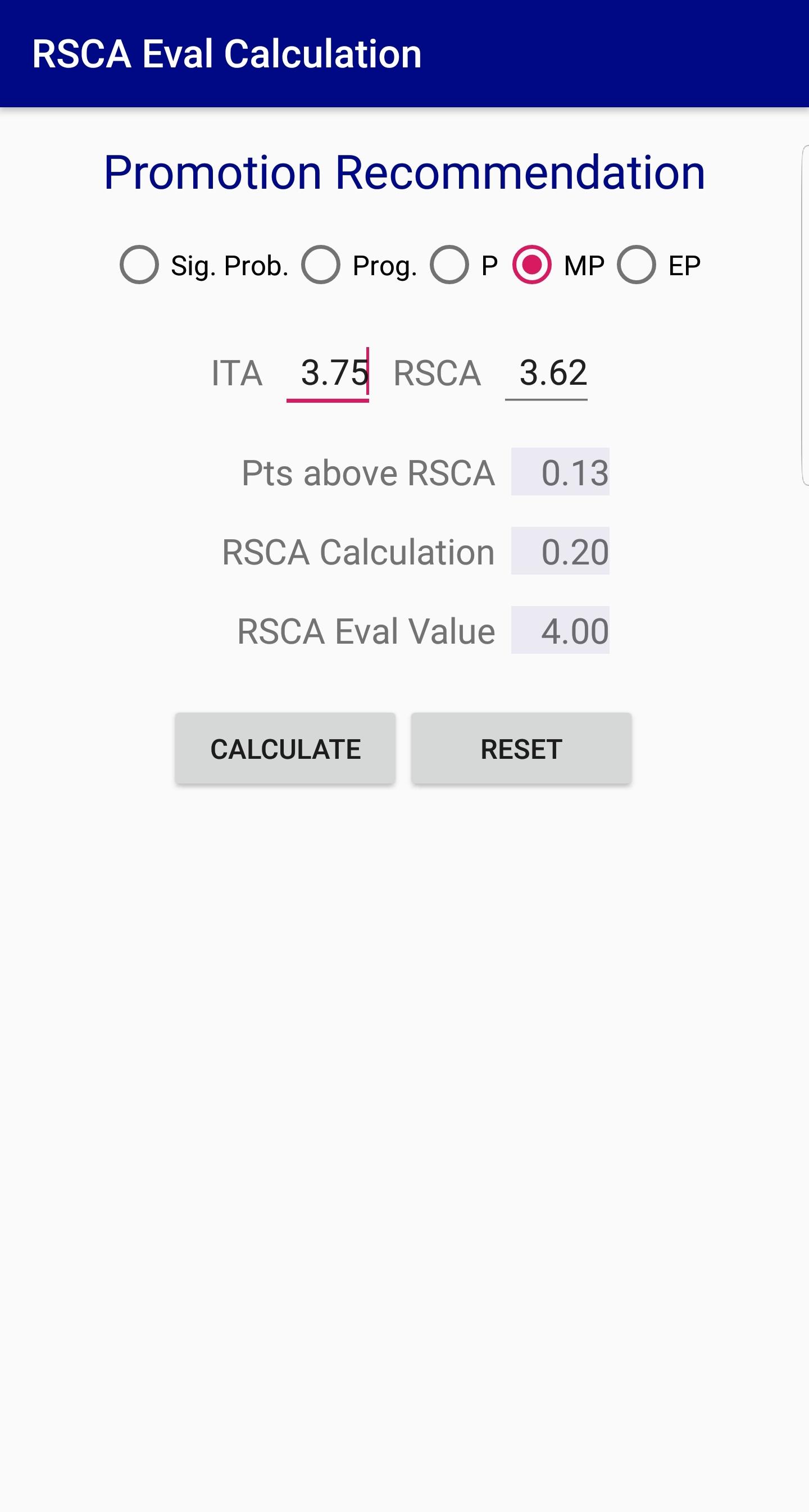 Evaluation RSCA PMA Calculator