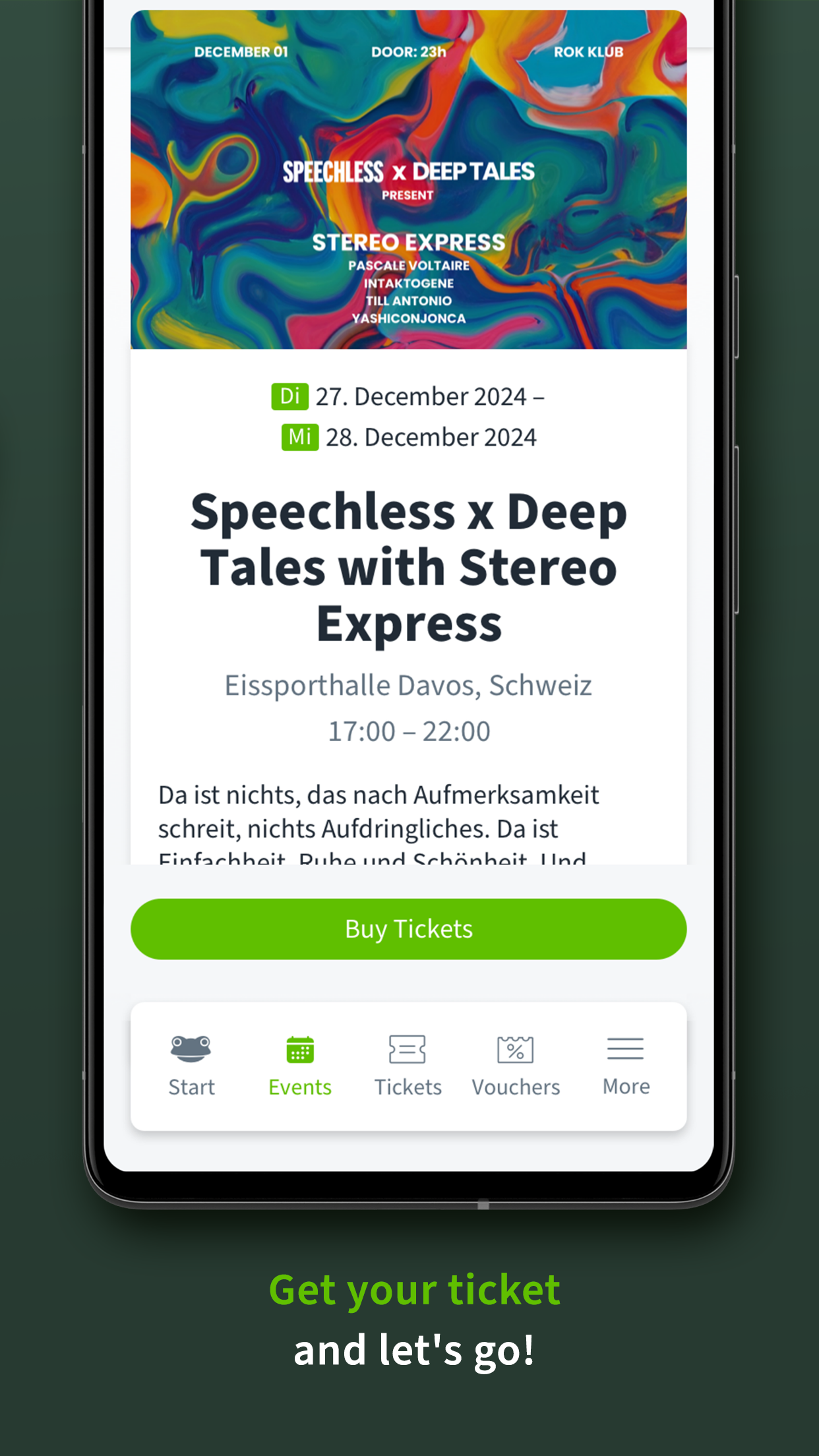 As an app user, you can benefit from exclusive discounts on various event tickets. In addition, the vouchers which you can also find on regular Eventfrog print tickets are always ready to be activated and redeemed in the app.