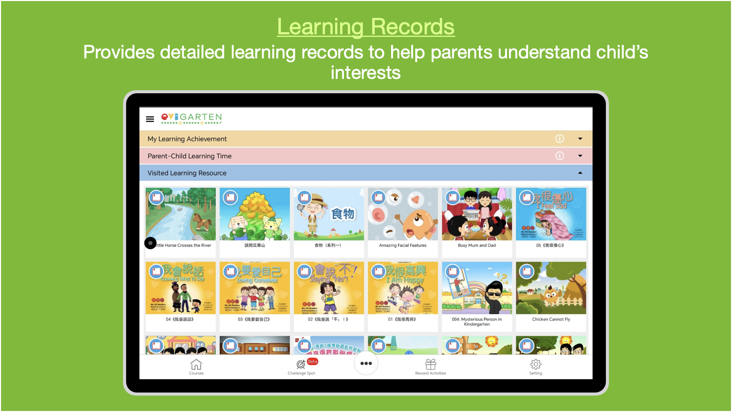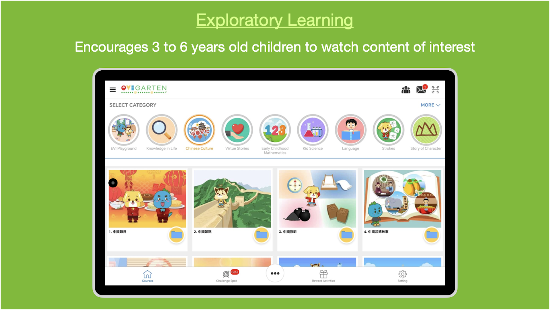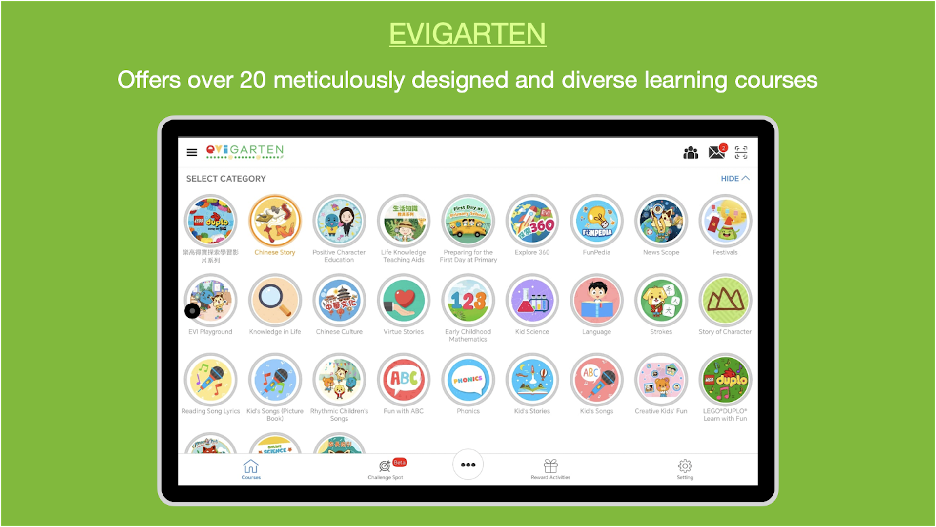 With the concept of "Learn by Exploring", EVIGARTEN is equipped with a well-designed and diversified curriculum to lead children to explore the world, and provides a comprehensive learning history for parents to better understand their children's interests and pace of learning.