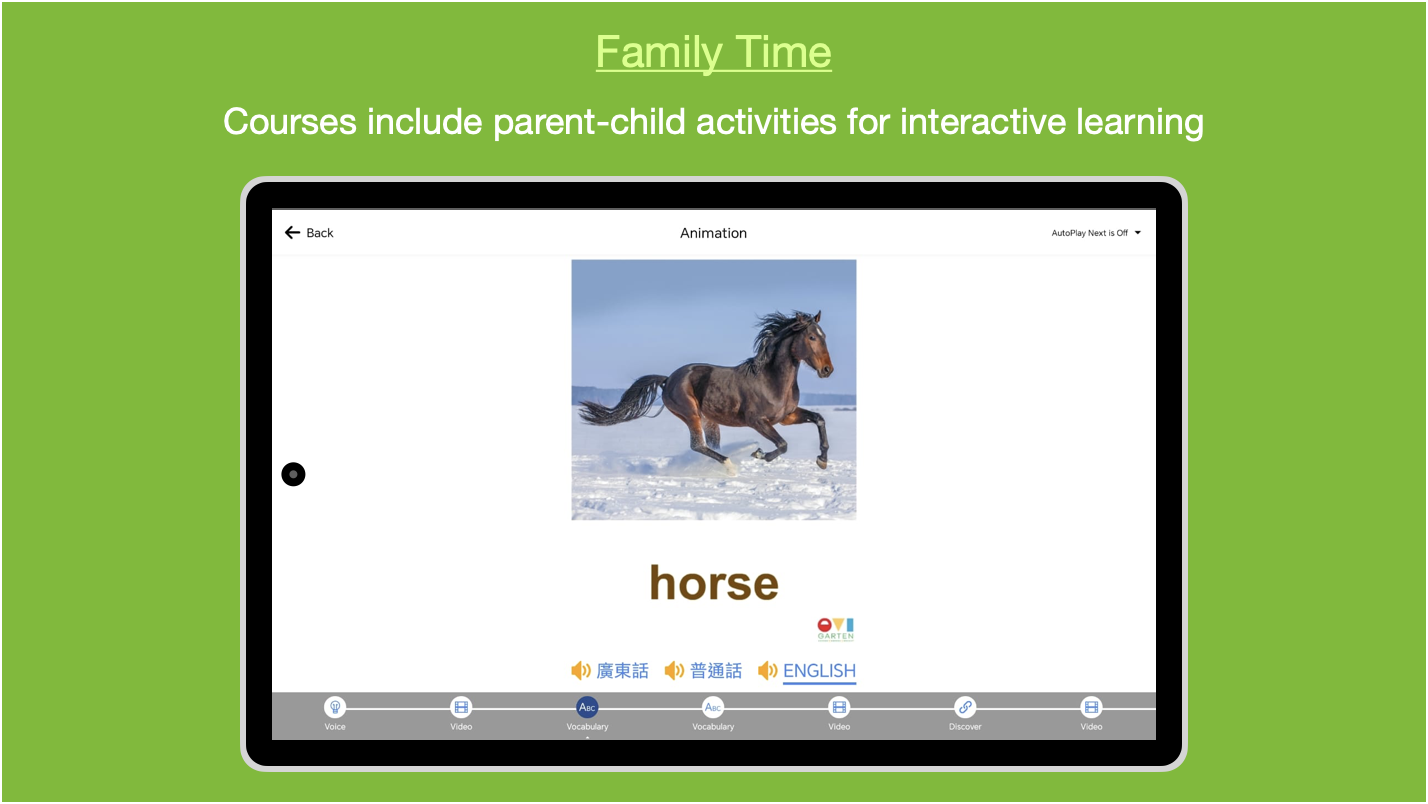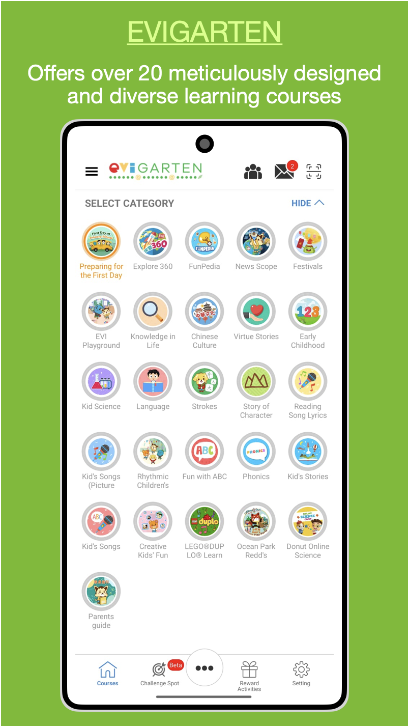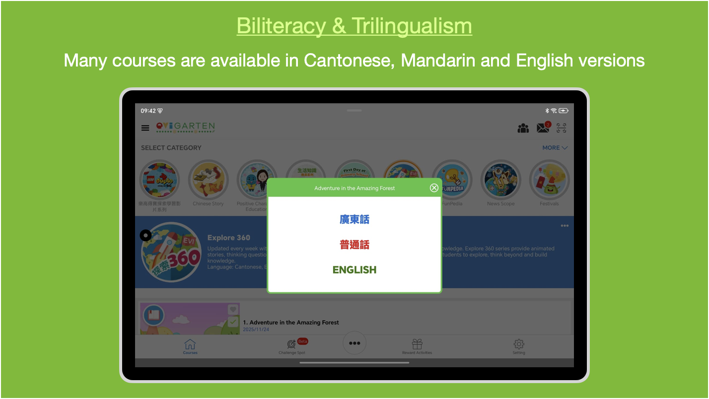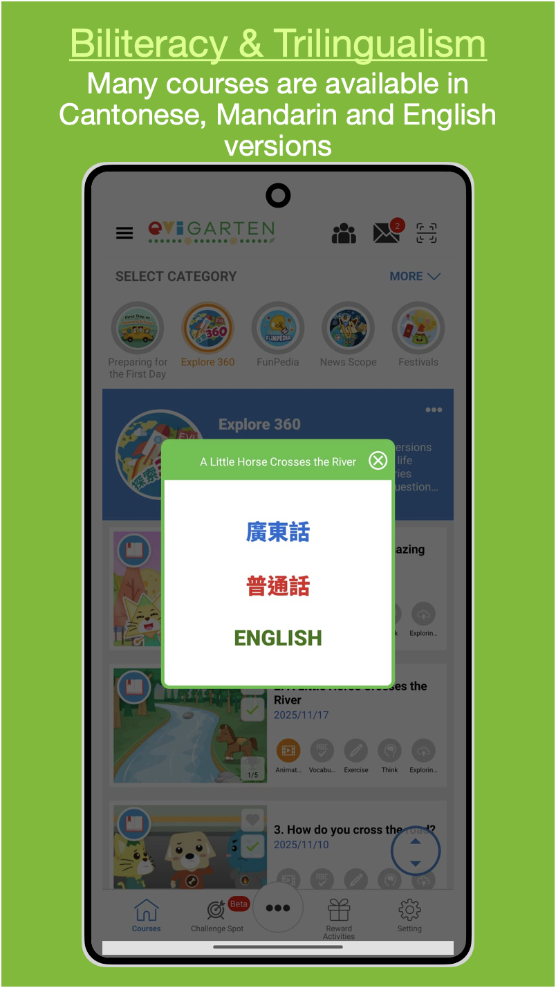 With the concept of "Learn by Exploring", EVIGARTEN is equipped with a well-designed and diversified curriculum to lead children to explore the world, and provides a comprehensive learning history for parents to better understand their children's interests and pace of learning.