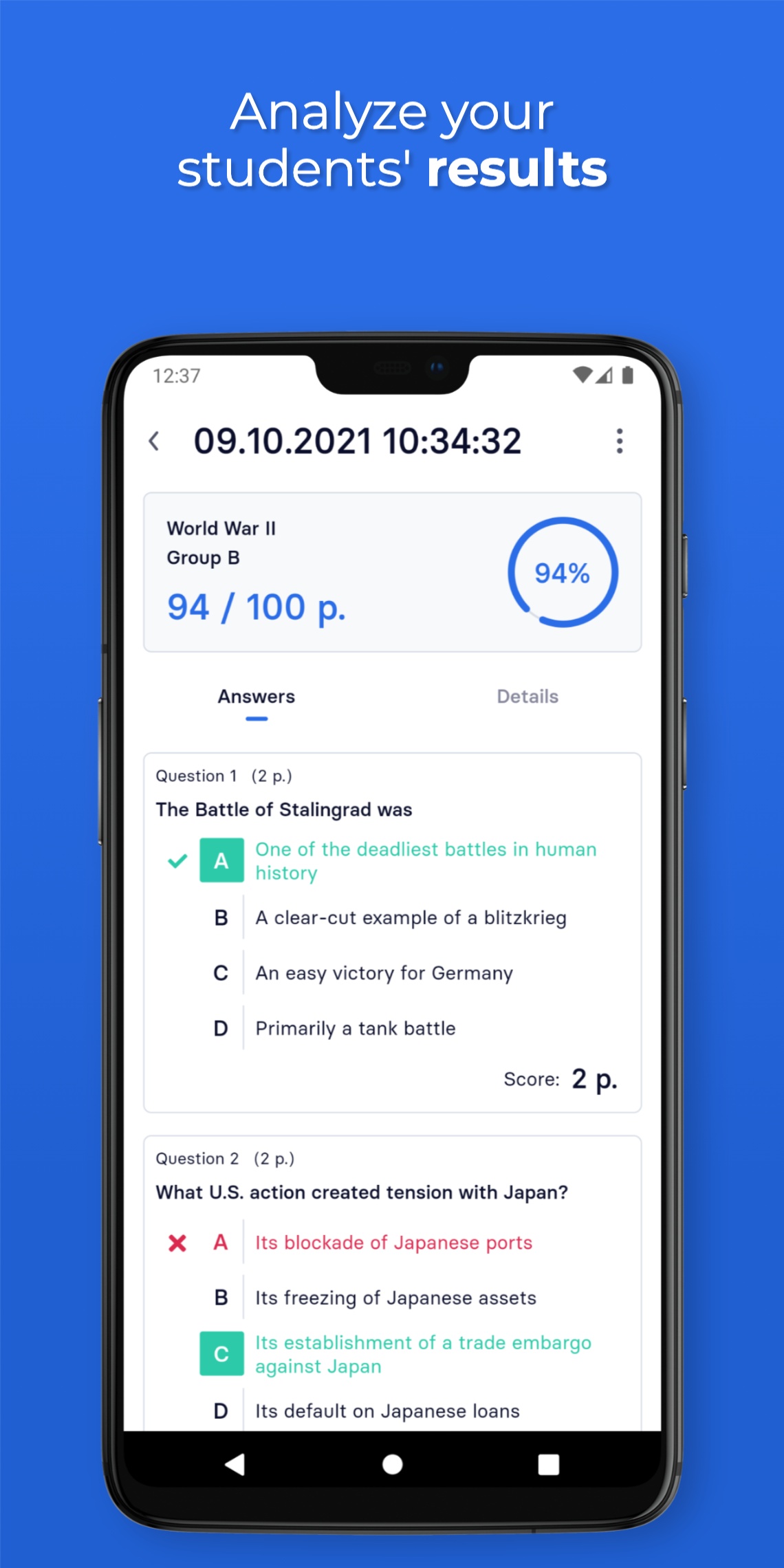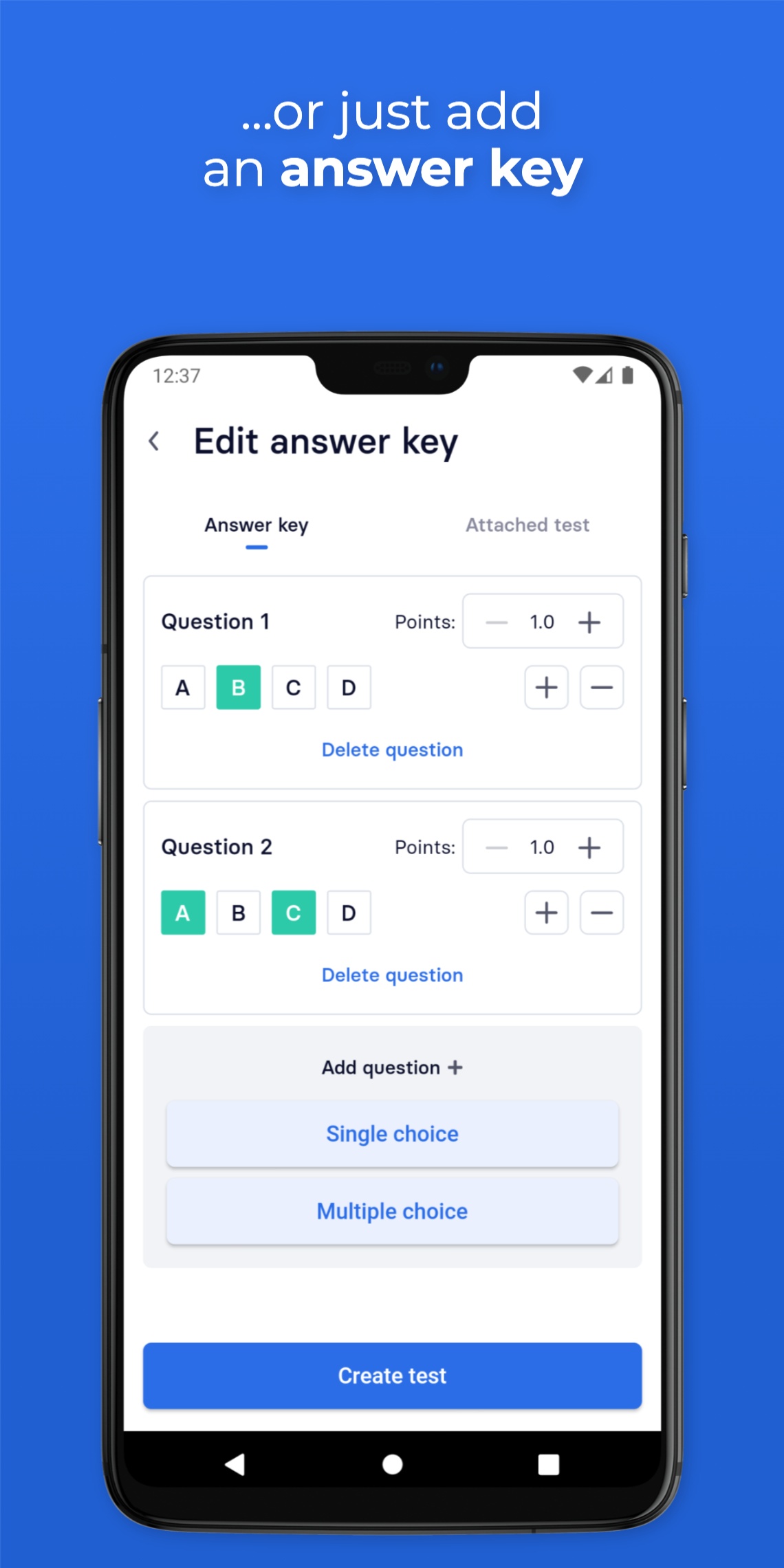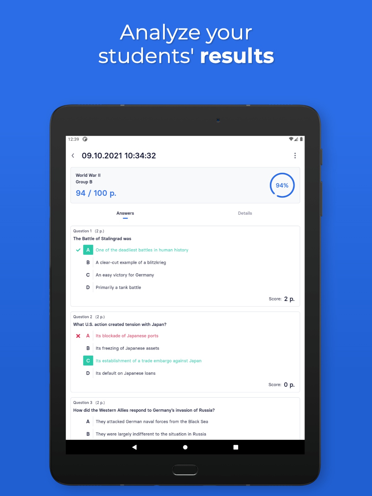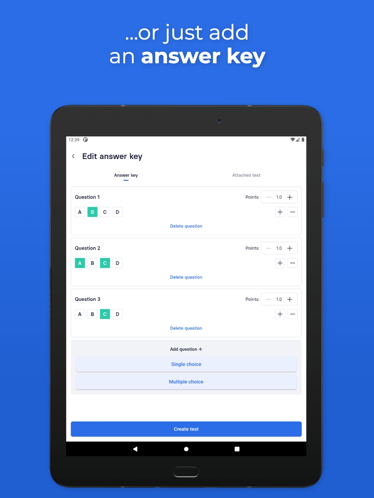 • PAPER assessments - Simply point your camera at a student’s answer sheet to grade it.