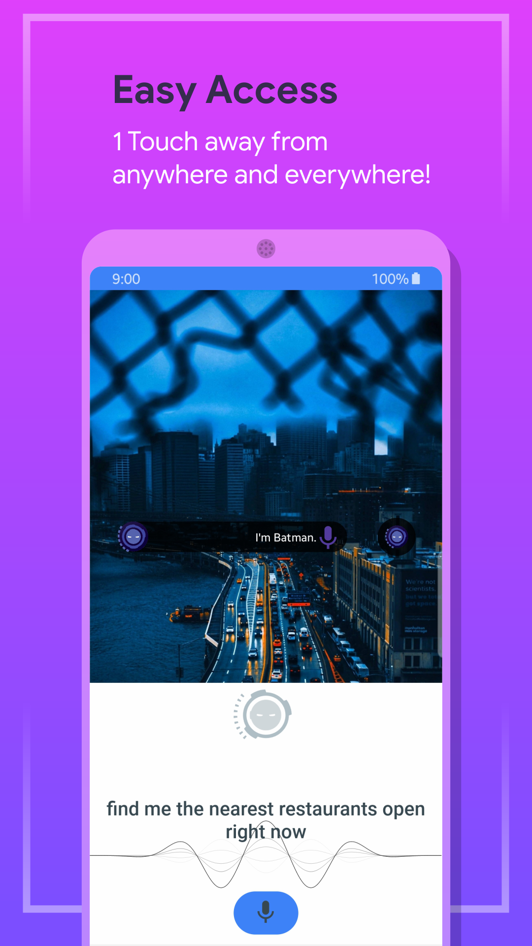 How many of us have secretly wanted to break into Tony Stark's mansion and steal away JARVIS voice assistant? Because after all, who doesn't want a voice assistant app that is Artificial Intelligent, but also super friendly? Well, now you won't have to, because we spent some time on our drawing boards, and created our own... Presenting to you, Extreme- Personal Voice Assistant. Now, you can also have an AI voice assistant app that will be the best virtual personal assistant, you could have ever found. Period. All you need to do is download the voice assistant app, and begin your journey with Extreme. Extreme is fully capable of understanding conversations in English and giving you everything you could expect from it. And we mean everything. • 🔒 Extreme protects your privacy. All your conversations with Extreme Assistant are stored in your device securely and is never seen by anyone else other than you. All the data is automatically deleted if you uninstall Extreme. 🔒 • Extreme currently supports English, Hindi, Tamil, Chinese, Indonesian, Portuguese, Breton, Catalan, Spanish, French, German. • 🌐 Want to bounce a question off the internet? Just ask Extreme your question, and let it handle getting you the answer to "What is radiation?" like a boss. • 📷 The extreme voice assistant is also your trusted selfie expert, just ask "Extreme, Take a selfie" and it will be done. • 🗺️ Never get lost, with Extreme helping you find places on Maps, be it downtown Venice or rusty Palampur. • ⚽ Get your daily scoop on your areas of interest. Just ask Extreme voice assistant to update you, say, "Extreme, Update me on yesterday's football match" • 📧 That's not it, the Extreme voice assistant can download and play stuff for you, call/ text your friends, email your colleagues and even answer phone calls! Extreme is contextually aware of time & device settings and he adapts itself based on when you wake it up. • 🥚 Apart from the regular chores, Extreme tries it's best to keep you entertained. There are some Easter eggs hidden inside the app, see if you can uncover them!