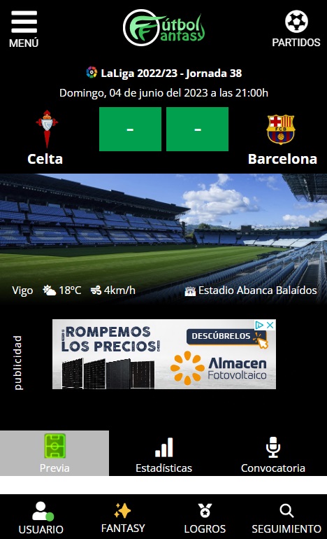 Pioneer and leader application in Fantasy information. Now, you can also play Fantasy Football while staying informed for all platforms. FútbolFantasy offers basic information on the Spanish La Liga. Everything you need to complete your Comunio, Biwenger, Liga Fantasy Marca, Futmondo, Míster, Sorare and other online fantasy football teams. In addition, since 2022, it presents an innovative Fantasy RPG game with which users can participate in different fantasy games, collecting points, climbing the rankings, unlocking badges and completing challenges in a fun experience. Also consult possible line-ups, injured and doubtful players, sanctioned for each day and warned, training news, trials, injuries, transfers, as well as the schedules for the next day and the points of different scoring modes, among many more statistics. It also contains the probable line-ups for the English Premier League, Italian Serie A and Spanish second division. It is the FutbolFantasy web version with performance and fluidity improvements that cannot be experienced from a browser.