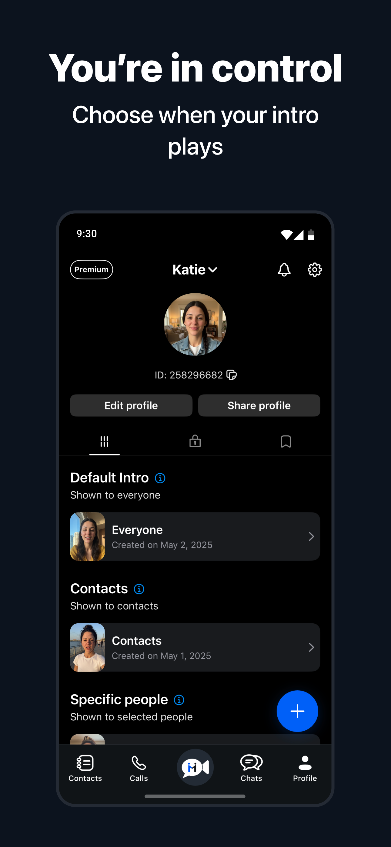 Set your intro video, choose your vibe, and express your identity visually with every call.