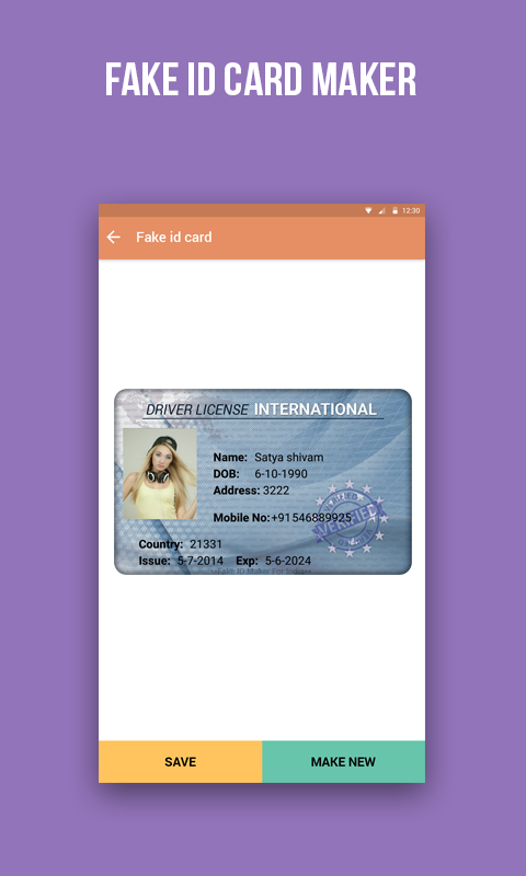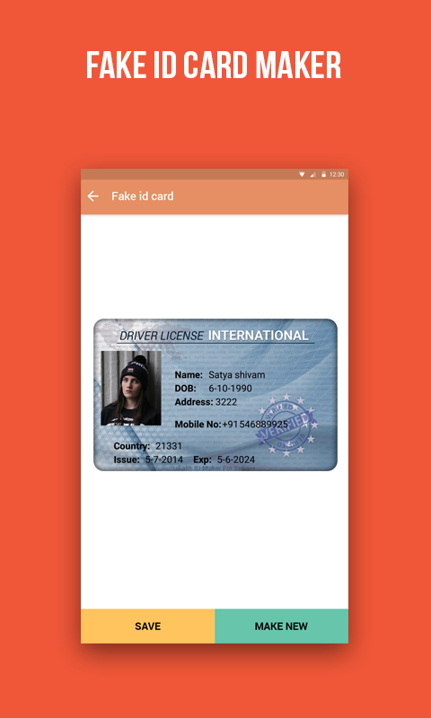 Disclaimer:- This is a Prank app and is meant for ONLY ENTERTAINMENT. We do not encourage the use this fake ID for anything other then entertainment. This app does not collect any information you have entered. This ID should not be used as true ID.