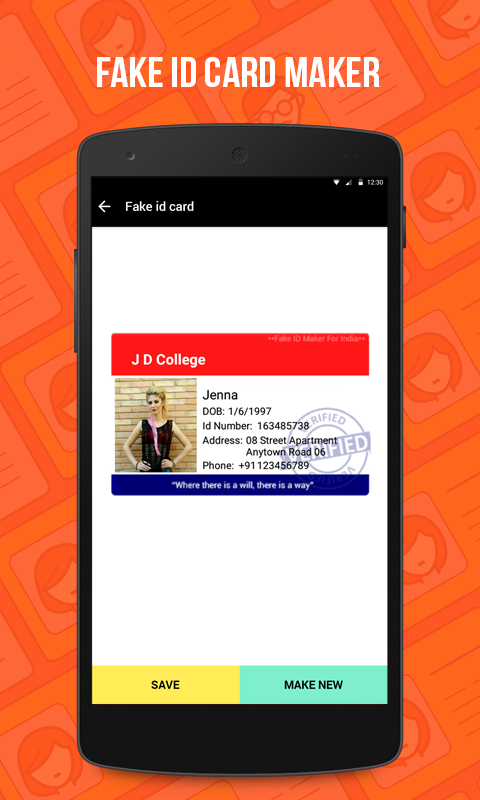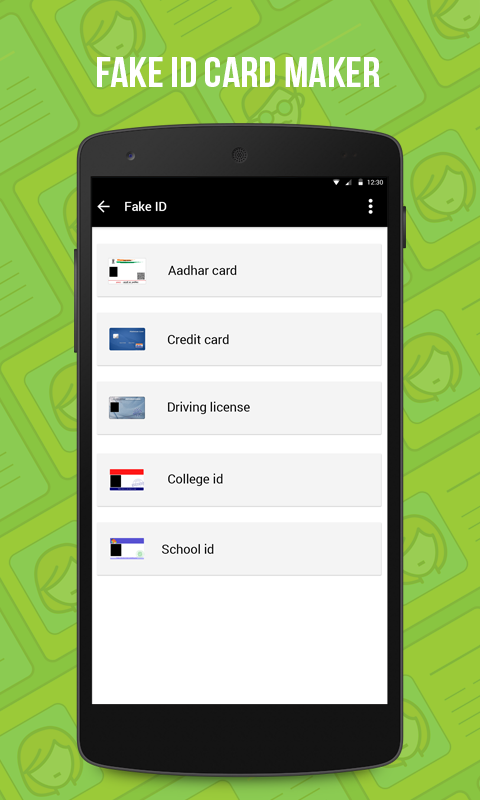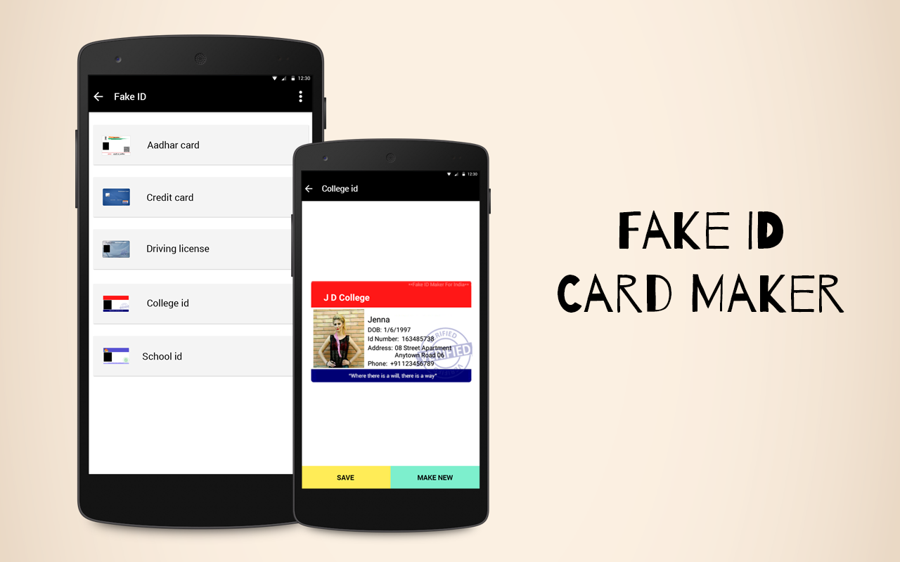 Fake ID Generator is a very Easy to use app. It 1st takes you through a process where you are asked to 1st select the type of ID you want to generate. Choose from over 5 fake IDs, Fake Aadhar Card, Fake Credit Card, Fake Drivers License, Fake School ID and Fake College ID. Them full in the details you want to have on your chosen Id and Generate Fake ID.