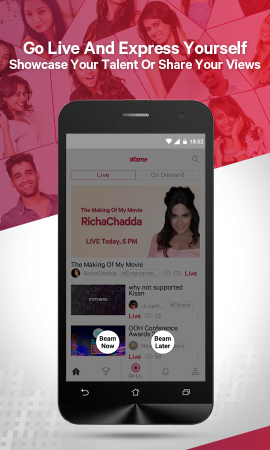Live Events: #fame lets you in where others can’t! Watch behind-the-scenes action at Music concerts, Movie & television award shows, Sporting events and Fashion shows. We are your one stop destination for Live Fitness workouts, Live Horoscopes, Live Comedy Shows, Live Songs & Music and a lot more!