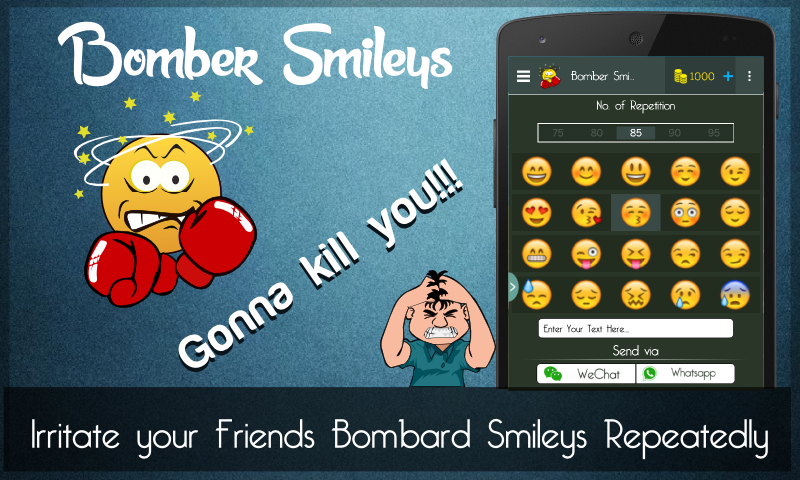 - Whats Bomber: Select the smiley, Write message and sent it multiple times