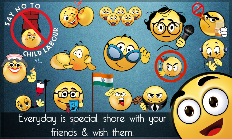 ** Festive smileys : Everyday is special, share with your friends & wish them. A new special smiley for every fest.