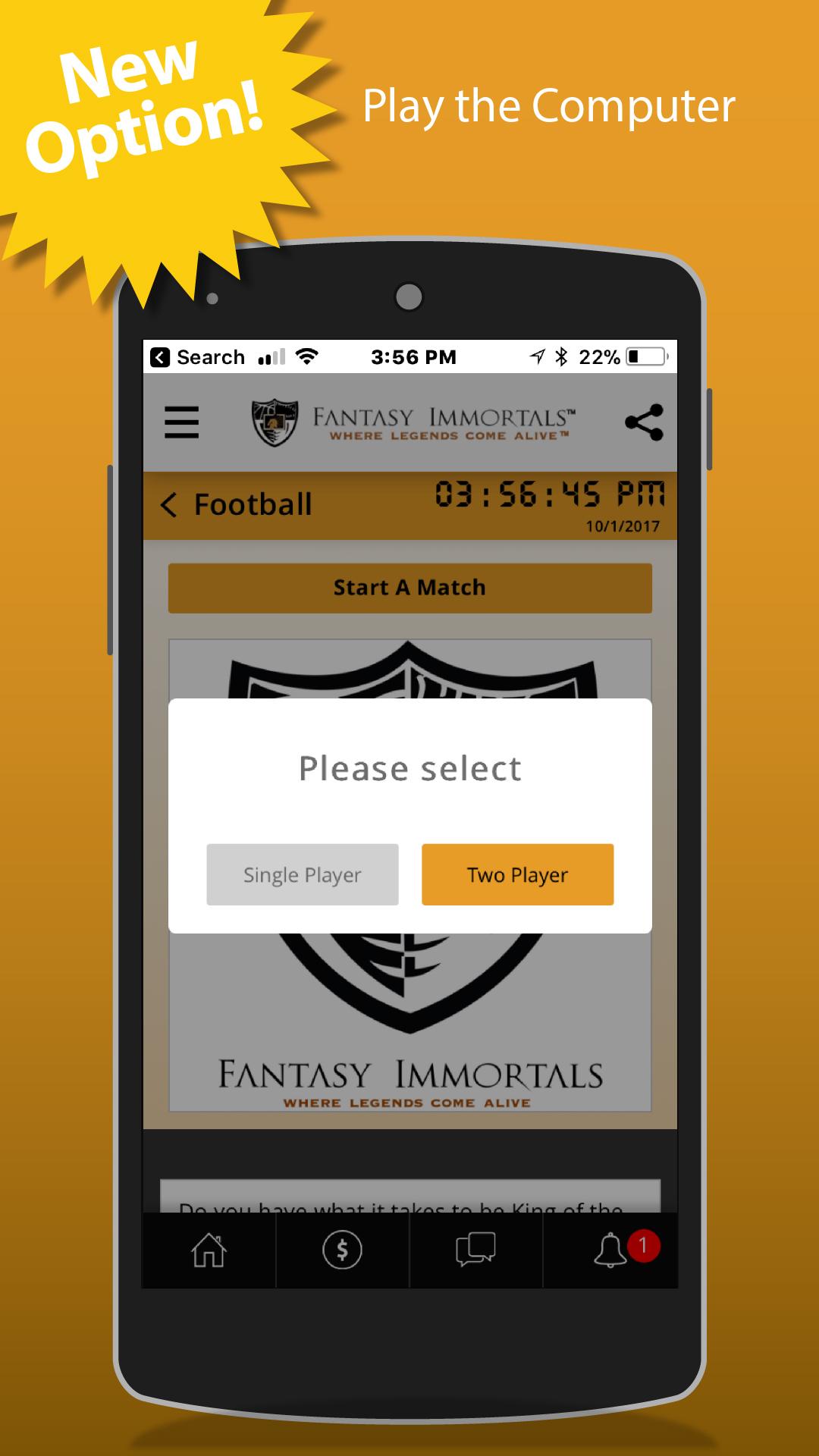 Want to see your favorite baseball superstars match-up? FI uses real basketball stats, football stats and baseball stats to create a Daily Fantasy Drafts game where any match up is possible. Jordan or Lebron? Brady or Montana? Big Papi or Babe Ruth? Draft your favorite all time immortal players from the NFL, NBA, and MLB. Play single player or face competition across the world to become the King of Tier. Download today to answer the greatest arguments in sports! Fantasy Immortals includes Basketball, Football, and Baseball Superstars. Users can draft athletes across generations to simulate the match-ups of their wildest dreams using real football stats, basketball stats, and baseball stats that span across generations of sports. Defeat all four tiers to become King of the Tier! Or play single player and discover the true best players of all time. Features include: • Baseball, Basketball, and Football modes • Daily Fantasy Drafts • Single player and multiplayer modes • Simulate an entire season in seconds • Conquer all four levels and become King of Tier • Unlockable immortal players • Spin the FI wheel to win cool prizes! Real Football Stats. Real Baseball Stats. Match-up your favorite football, basketball, and baseball superstars in daily fantasy drafts. Download today!