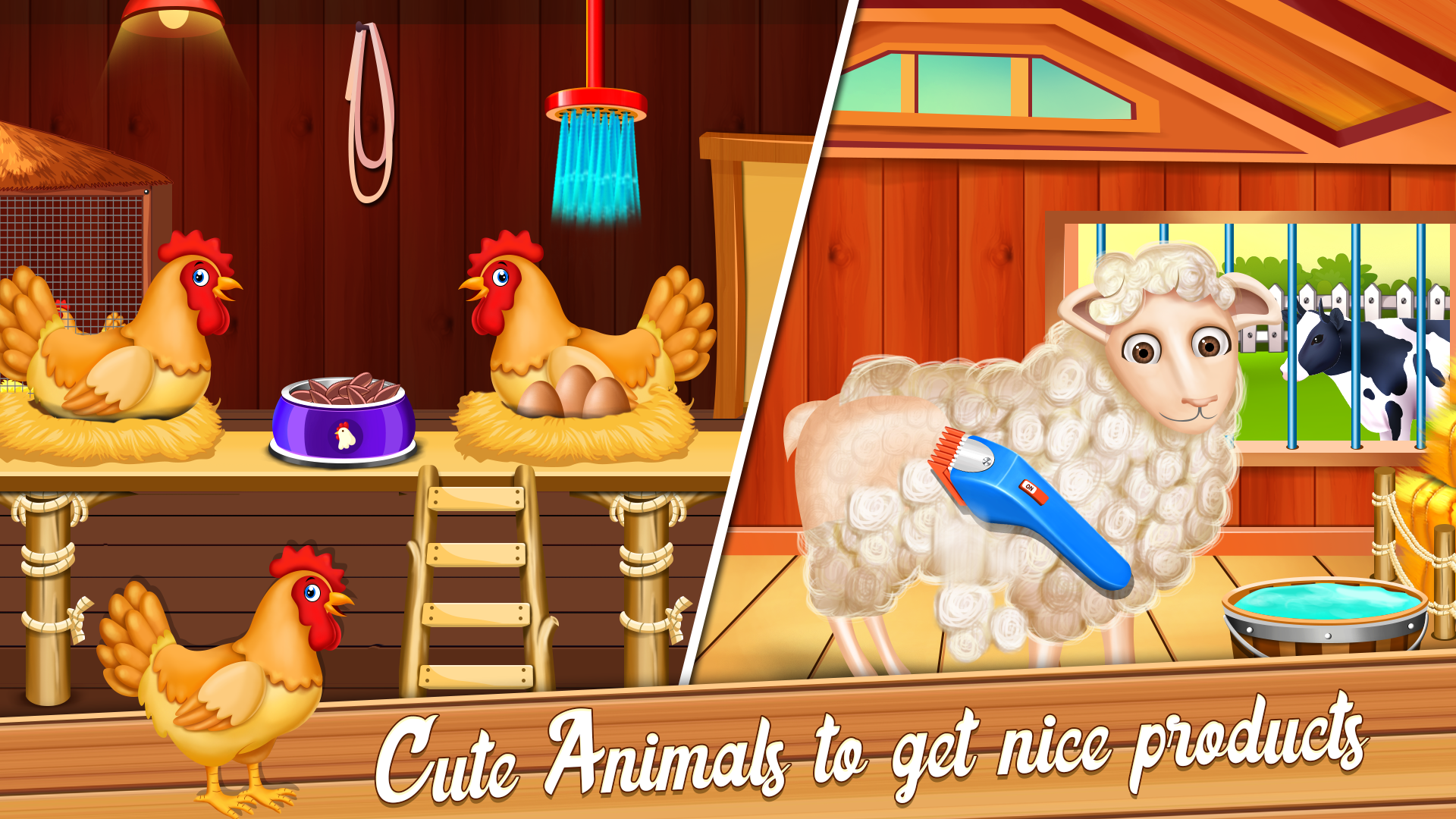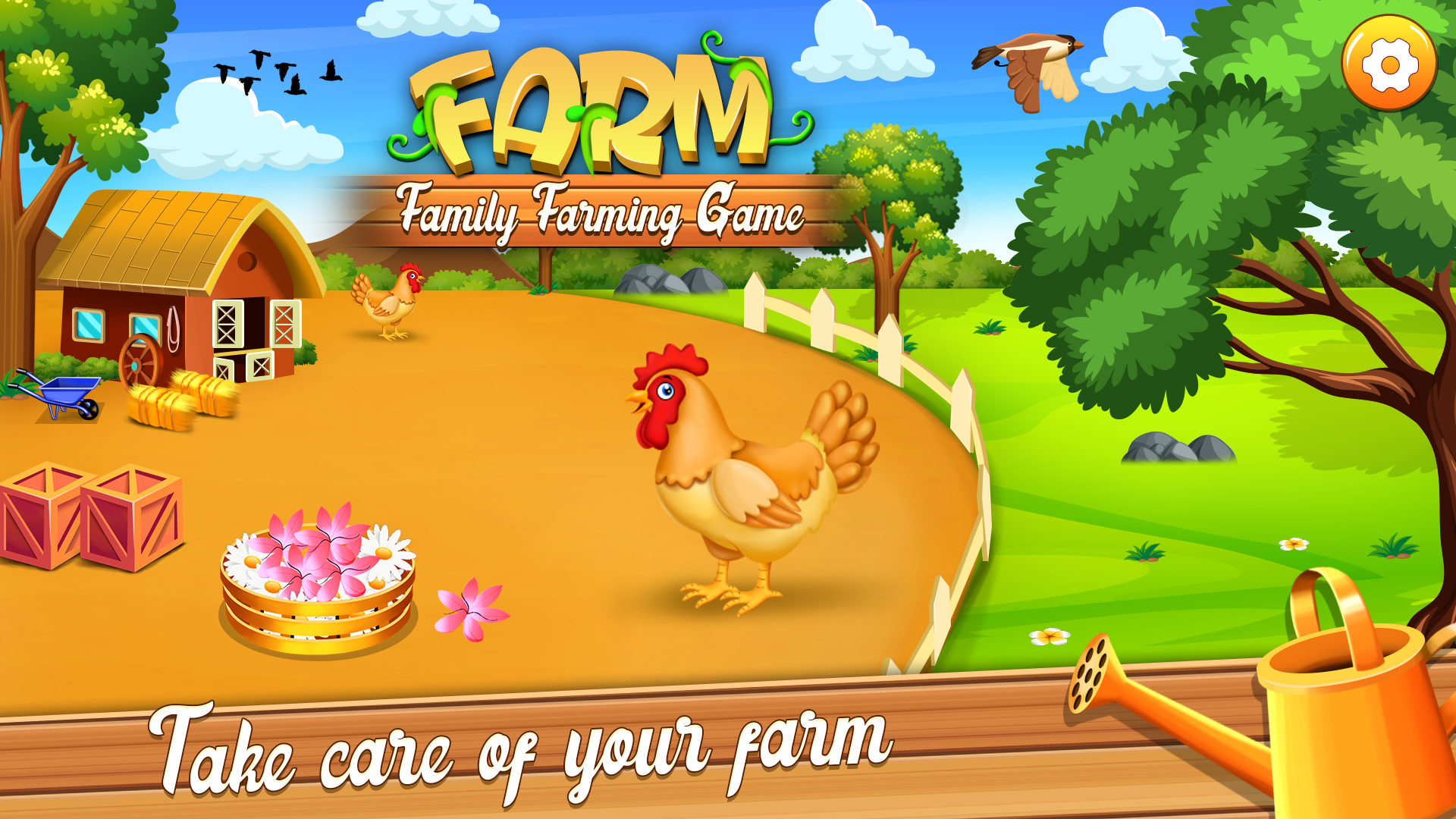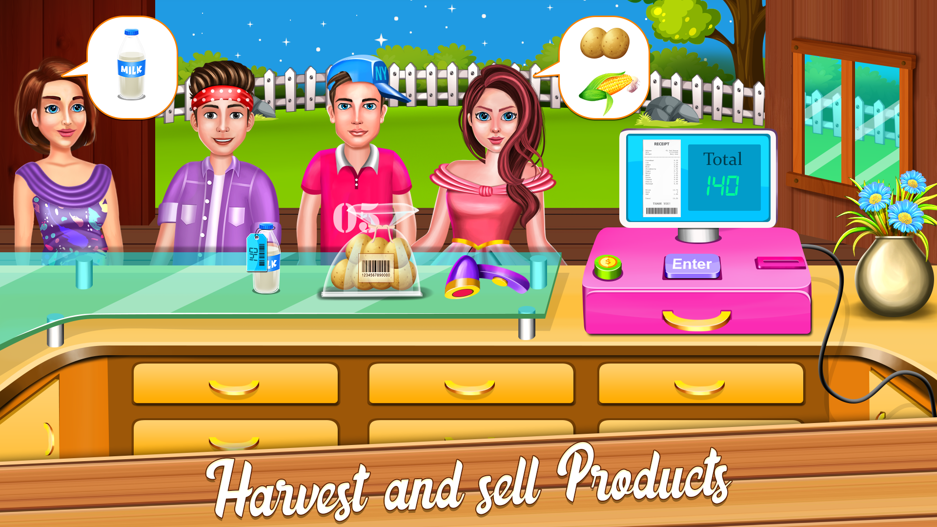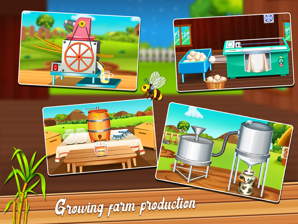 Let's create a beautiful little virtual farming world! You can cook gourmet,raise animals,grow fruits and vegetables,grow flowers, produce honey,wool,egg and much more in this sweet little farming game. You have a food producing farm.Wonderful and fun things happen around the farm everyday! Your hard work will surely pay you off,here! You will receive numorous orders by customers as your organic produces are in huge demand nowadays. Fruits and vegetables farming: We have various kinds of seeds in our farm such as potato,corn,tomatoes and more.Bury these seeds in the soil,offer them enough water and sun light.Don' t forget to give fertilizer and repel insects when needed.As a result, you will get a satisfactory result in the form of eye captivating crop. Raise animals: Take care of farm animals by feeding cows with hay, cleaning hens' house and give them a nice bath to enable their healthy growth.Raise the sheep with extra care.Give them a soothing sleep and keep them in good mood by playing refreshing music,clean their pool.Do all these to get the best quality of wool from them.Create a beautiful flower garden to help bee in producing healthy honey in beehive. Wheat and sugarcane will be used in production of another organic products. Produce and sell: You farm produces are in great demand!Let' s turn them into ready to sell products. Unique packeging skills are required here!pack milk and eggs,make flour out of wheat and suger out of sugar cane and extract honey from hives .When you gethered all these produces,use them in preparing delicious cookies. You can also sell all these produces separately. Through the use of machine,make some beautifully patterned sweater out of wool and sell them at good price. Fresh and mouth watering tomato ketchup will be the most demanded product of your farm shop. Produce more and earn lots of money by using your great farming skills in this farm game! Take a glance through some features: -Role play as a farmer -meet cute farm animals like cows,sheeps,hens and bees. -harvest and process lots of farm produces. -the handy processing machines for easy eccess. -learn management of farm and money through producing and selling products. -Attractive packaging skills. - develope healthy and hygienic habits. -cultivate kindness by raising and caring adorable animals. -know about hard effort of farmers in obtaining food so you can learn to save food. Don' t wait,become virtual owner of your own little farm! Download our new farm game! Happy farming!