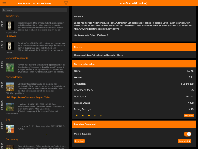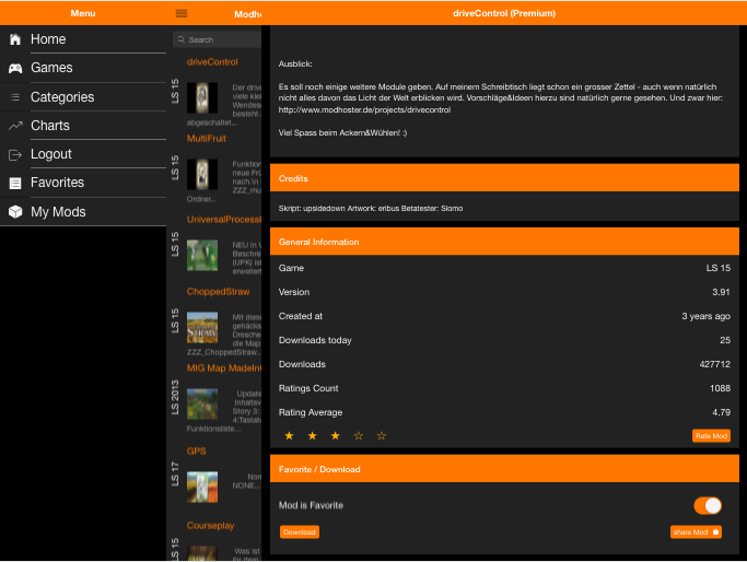 - displaying mod rating in list and single mod view