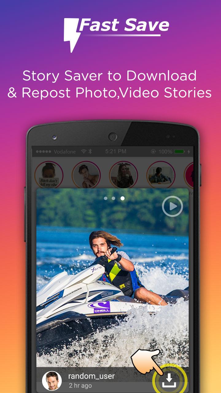 Story saver: Use insta story saver to view or save photo/video stories, share, repost, lock and much more. Hold down stories to pause story progress and see in full screen, Swipe down or up to exit from stories with animation. Save stories before they disappear in 24 hours.