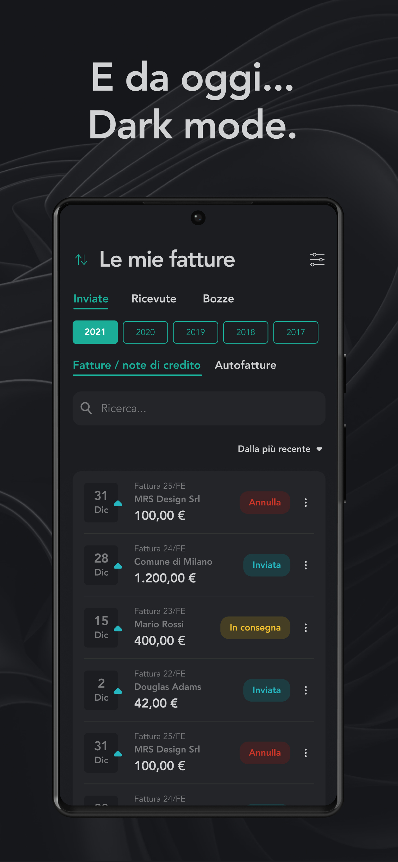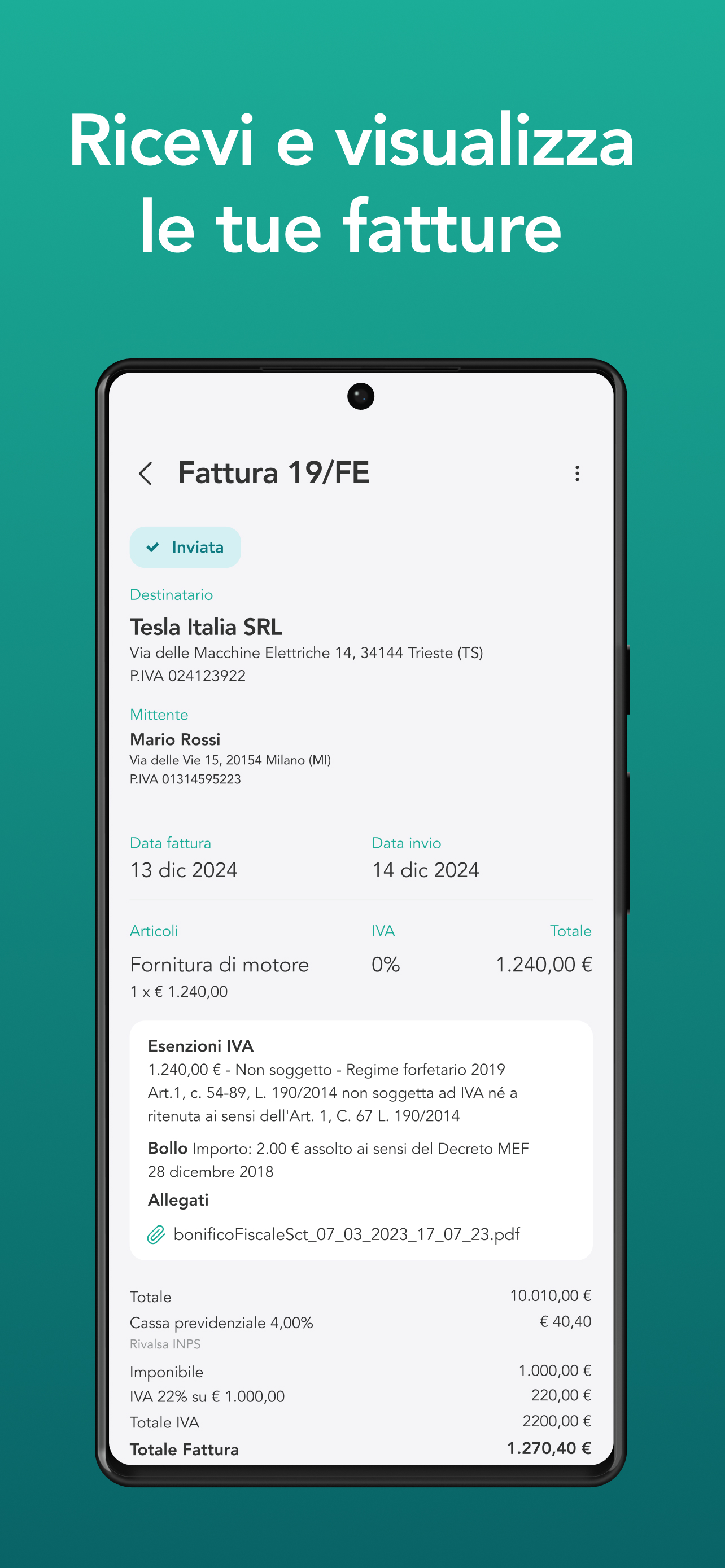 Fattura Elettronica App (Package Name: com.tek.fattura) is developed by FatturaElettronica APP and the latest version of FatturaElettronica APP 22.2.0 was updated on July 28, 2023. FatturaElettronica APP is in the category of Finance. You can check all apps from the developer of FatturaElettronica APP. Currently this app is for free. This app can be downloaded on Android 5.0+ on APKFab or Google Play. All APK/XAPK files on APKFab.com are original and 100% safe with fast download.