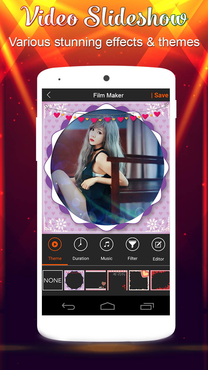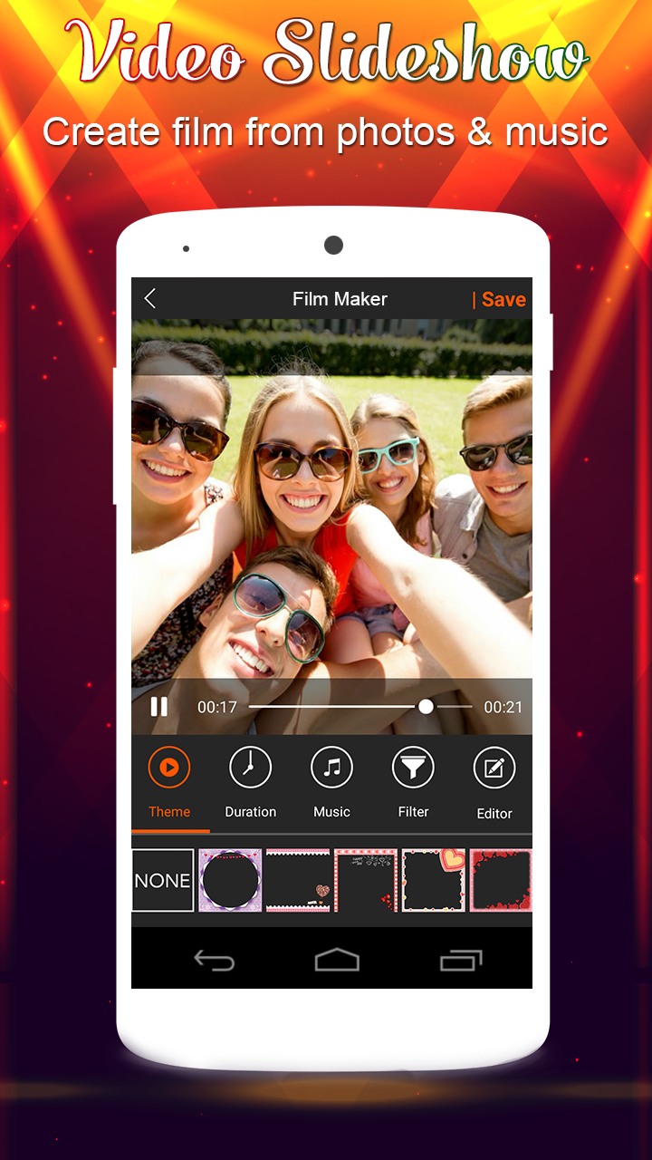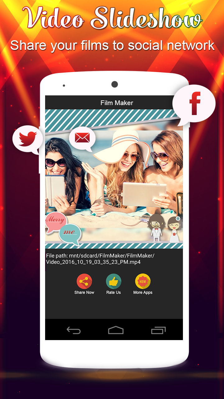 Film Maker is one of the best video editor, photo slideshow maker and movie editing apps in Android Store. With this app, you can easiest way to create, edit your video story from gallery photos or vivavideo. We are trying to build an all-in-one video editor as: Text, Music, Theme, Effects, Frames... Everything you need to make an awesome video and vivavideo