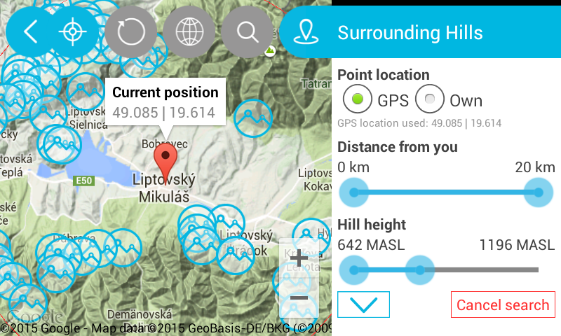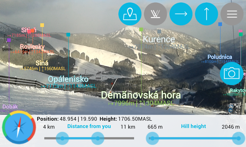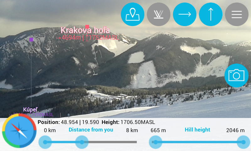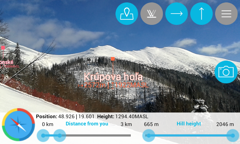 Have you ever been on a hike, without knowing what hills are around you? Get to know the hills and mountains around you just by using our app and your own smartphone’s camera. The app Find the Hill will help you discover world hills and visualize their names on your mobile device. Using the camera in your smartphone, you can see the hill with it’s name, description, height and distance from your current location. A filter let’s you choose which hills will show up on the map according to the distance. Find the Hill can recognize, which hill you’re currently standing on and also the sealevel of that point. After clicking on any given hill, you can visualize it on the map screen, where your location and the hill’s location will be shown. Project webpage http://www.findthehillapp.com App features: - more than 240 000 mapped world hills - visualization of the hill’s location and distance from your current point - possibility of working offline - range settings for up to 20km - compas - display of given hill on the map and of the current location on the map screen - display of your current latitude and longitude - display of your current sealevel - display of the current hill, on which you are standing The app is optimized for Android mobile devices. Support for tablets coming soon. If you like our app, don’t forget to review and share it. Thank you