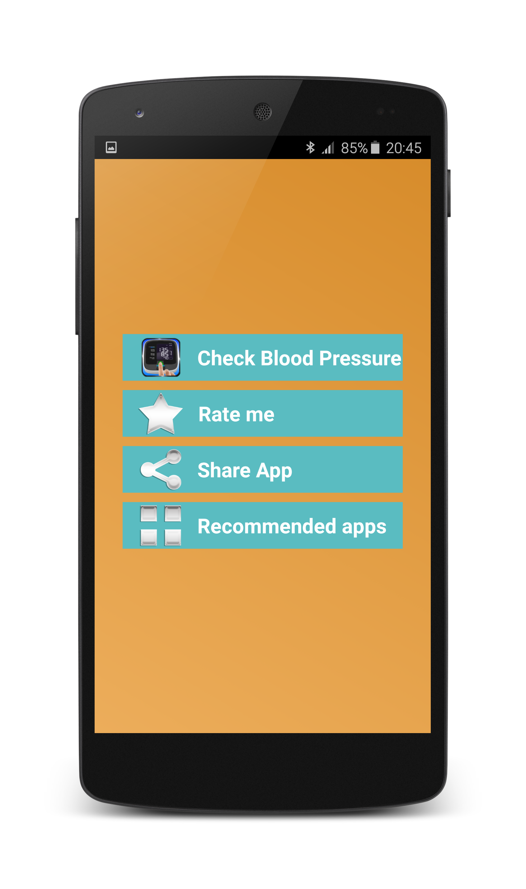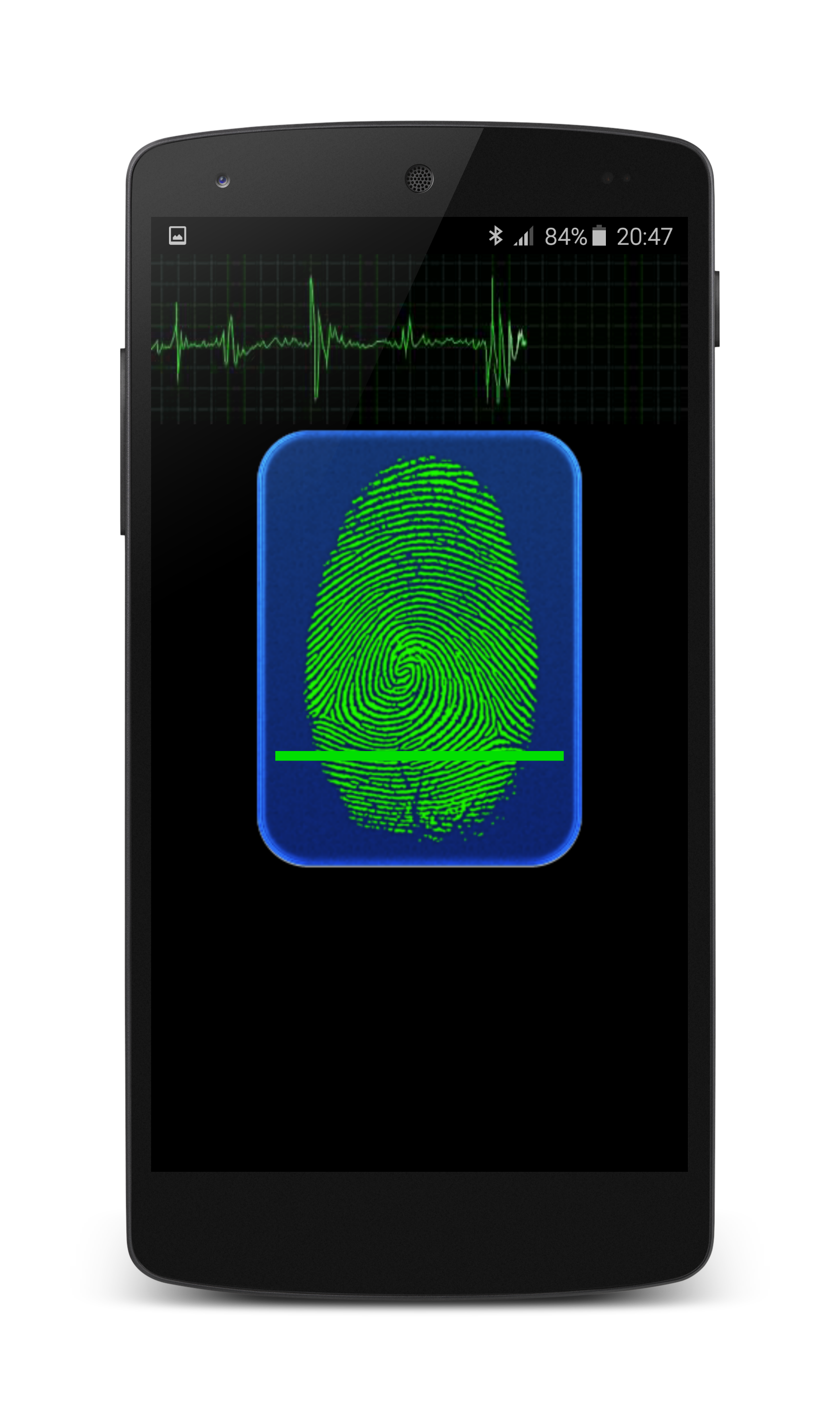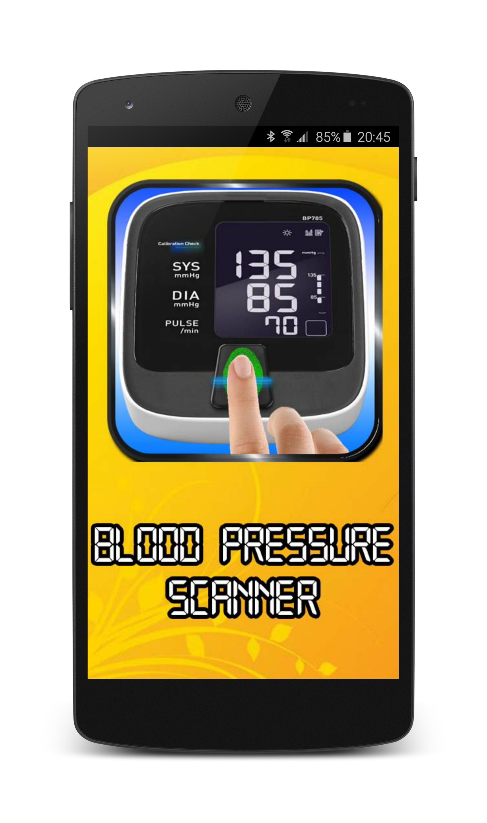 When you open Finger Blood Pressure Checking Scanner app, it will ask you to place a finger on phone screen, when you place a finger in finger shaped area then it will scan your finger and show your BP on the scree.