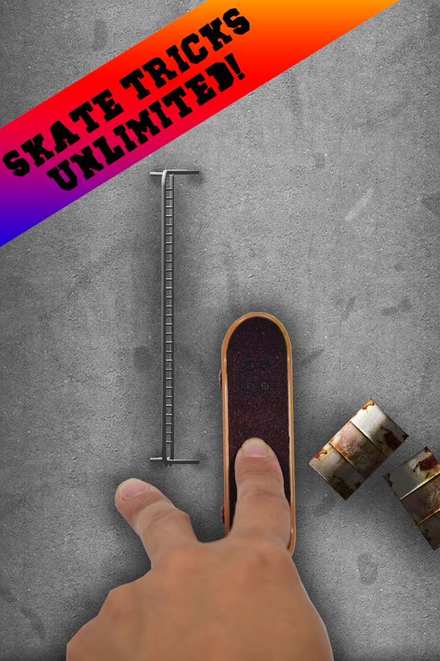 Skate tricks to the max! Push off your finger in the skate track and fell the speed, packed with obstacles for you to perform many tricks: Ollie, Aerial, Flip tricks, Slides and grinds or Freestyle. Put your finger on the skate and go play! Features: • 3 Skate Tracks ( Concrete, Wood, Asphalt ) • Beautiful 3D Render. • Hip Hop Song. • More levels are coming soon. • Perfect for tablets. Made for all fingerboard and skate lovers, share with your friends!
