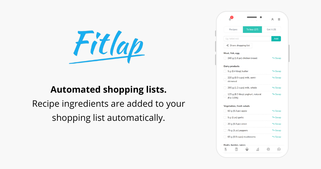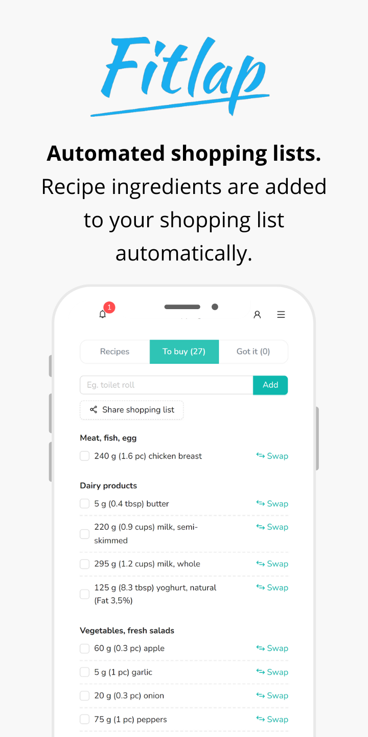 Fitlap.com: An effective diet plan to lose weight and get in good shape. 🌟 Are you ready to transform your life? Look no further! Fitlap is your ultimate companion on the journey to a healthier, happier you. Whether you’re aiming to shed a few pounds or completely revamp your lifestyle, Fitlap has got you covered. 🥗 Personalized Nutrition, Tailored Just for You Our expert nutritionists create a customized plan based on your unique preferences, lifestyle, and health status. No more one-size-fits-all diets - this is all about you. Explore over 100 mouthwatering weight loss recipes that are not only effective but also a delight to your taste buds. Say goodbye to bland meals! 📝 Track Your Progress, Stay Accountable Keep a detailed food diary to monitor your daily intake. Understand what you’re eating, track your calories, and make informed choices. The built-in calorie counter ensures you stay on track. No more guesswork—just results! 🛒 Smart Shopping Made Easy Tired of wandering aimlessly in the grocery store? Fitlap’s convenient shopping list saves you time and money. Get exactly what you need for your healthy meals. 📱 Access Your Plan Anytime, Anywhere With our user-friendly app, your meal plan is always at your fingertips. Whether you’re at home, work, or on the go, Fitlap has your back. 🌈 Feel Good, Look Great Forget extreme diets and deprivation. With Fitlap, you can lose up to 2 pounds per week while enjoying delicious, balanced meals. Yes, you read that right! Boost your metabolism, increase your energy levels, and watch your mood soar. It’s not just about weight loss; it’s about a better you. 👉 Download Fitlap now and take the first step toward a healthier, happier lifestyle. Your body will thank you! 🎉 You can read the terms of use at https://fitlap.com/terms-of-sale