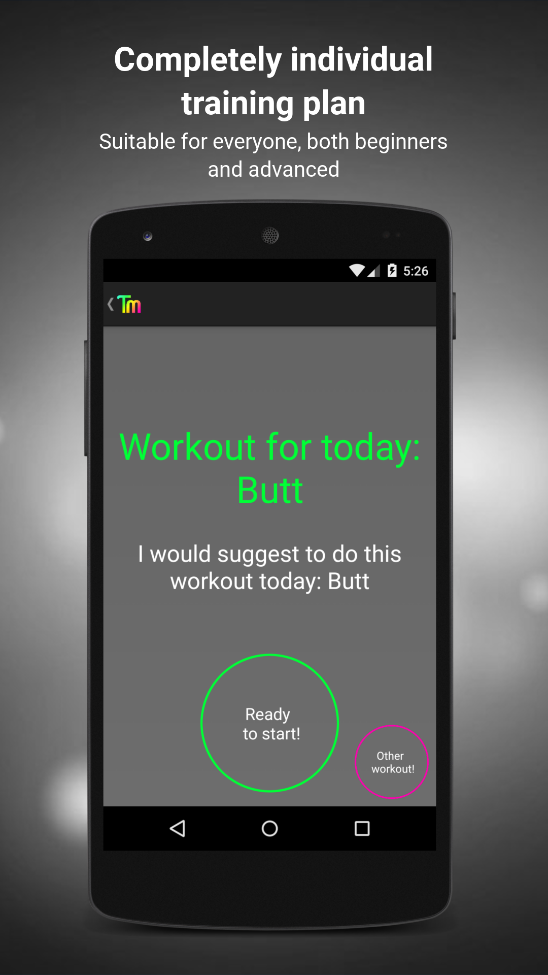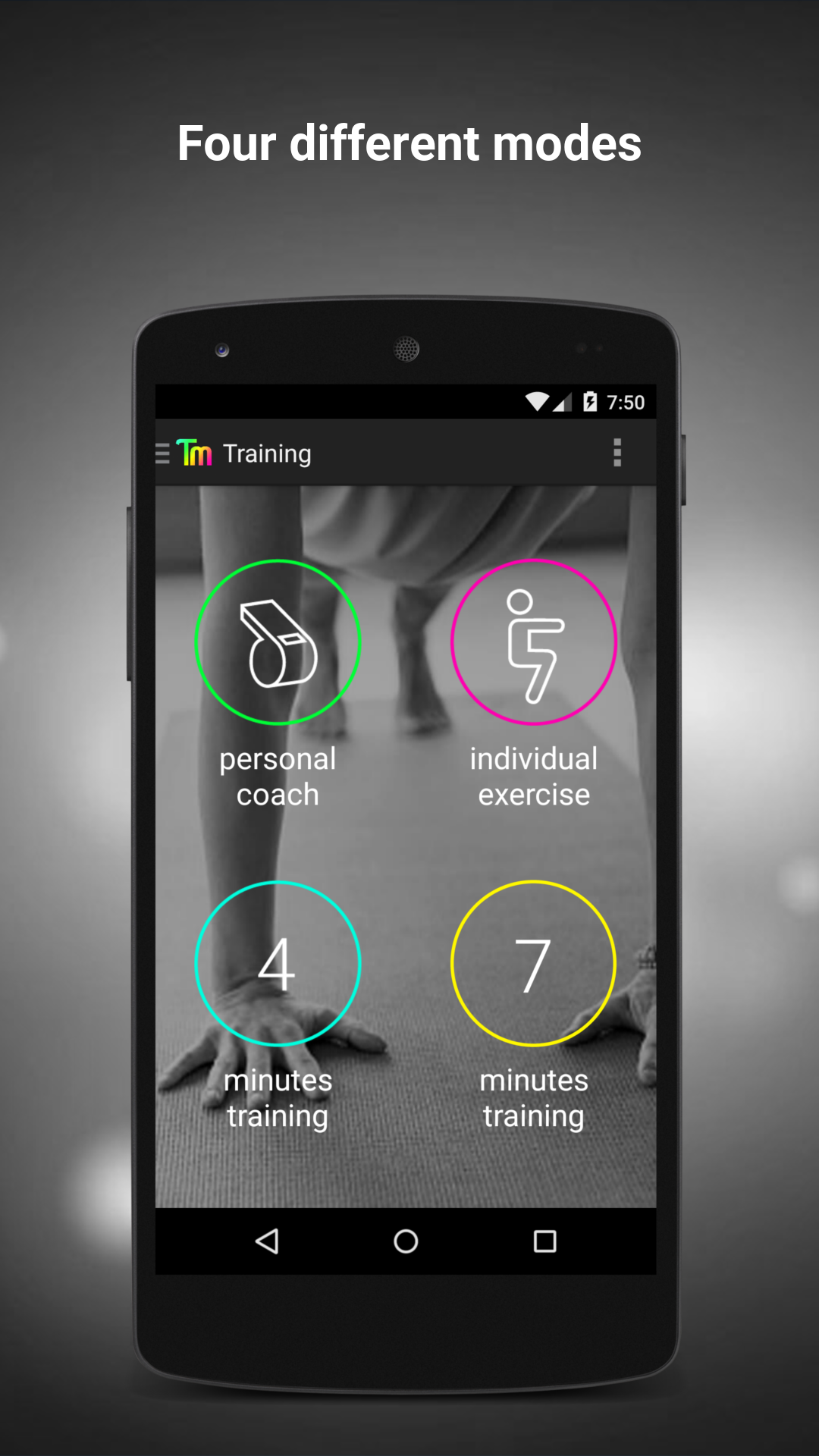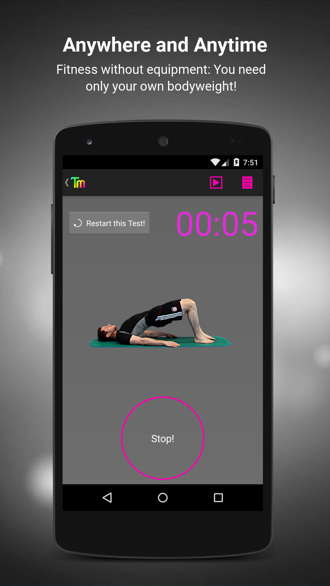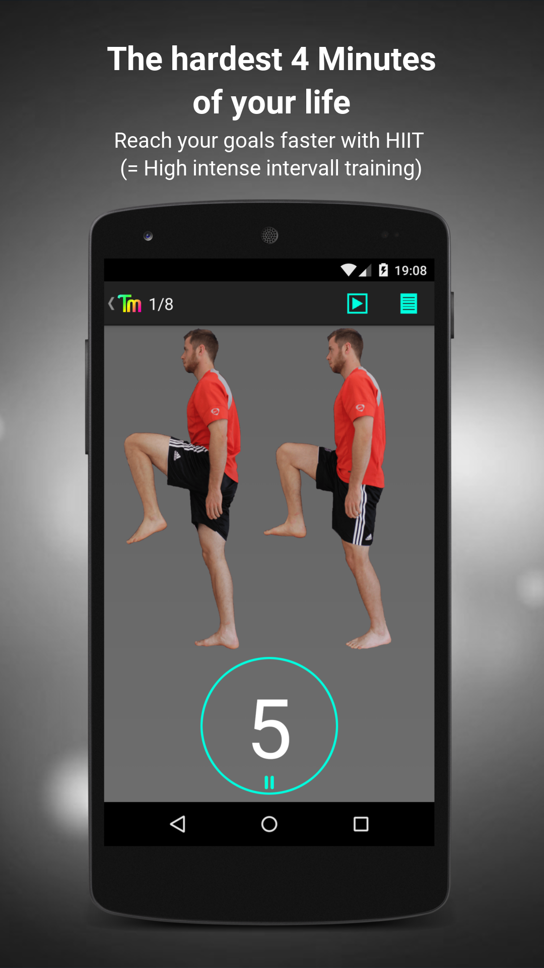 Features: • Every exercise is explained by Images, Text and VIDEOS! • Most effective workouts if you are short in time! Anywhere and anytime! Do this at home, at office, at your hotelroom etc. • Choose your favorite motivation music. You can choose between three motivational songs from different genres • You can do every exercise without equipment. The only thing you need is your bodyweight and a yoga mat or a towel. • Reach your goals faster with intervals (HIIT and Tabata). You want to lose some weight for your next holidays? Then start the fat burning of your body with the 7-Minutes-Training and the new 4-Minutes-Training (= Tabata). Start today to get your bikini or your beach body in the fastest time! • Say goodbye to your back pain: build your body with your own bodyweight are well suited to prevent back pain. Exercises like the FOREARM PLANK can train your torso, that means that ONE exercise trains different parts of your body for example your abs and your back muscles. Do something for your back and your health and begin now to do some fitness exercises every day. • Wherever and whenever you want: You can do this app wherever you want – at home, at your office, hotelroom etc. • Burn calories and lose weight! "Fitness at Home" helps you to stay fit and get healthy! • Get your own personal trainer for FREE! The coach gives you the instructions to stay fit! • Highly suitable for medical rehabilitation after injuries! Personal Trainer: – complete personalized/ individualized plan for everyone: MEN and WOMEN! – With specialized algorithms suitable for both BEGINNERS and ADVANCED users! – You can only do ONE push-up? No problem! The personal coach improves your perfomance with pleasant steps. – You can already do a LOT of push-ups? No problem! Every workout is adapted to your individual perfomance. Individual Exercise: – Train one single exercise. Your current fitness-level is tested by the App instructor. – Improve your perfomance until you are satisfied with you and your body 7 Minutes Mode: – Classical 7 Minutes with different levels of difficulty (HIIT = High Intense Intervall Training) – Special 7 Minutes like Bikini-Special, Butt, Legs, Strength, Endurance... – Most effective practice if you are short in time! You need NO equipment! 4 Minutes Mode: – New intervall method called TABATA with a duration of 4-5 minutes! – Very hard ;) → THE HARDEST 4 MINUTES OF YOUR LIFE – Belly, Butt, Legs, Endurance, Plank, Push-Up, Bikini-Special etc. – Most effective practice if you are short in time! You need NO equipment! • Fitness at home. • Most effective workouts if you are short in time! Anywhere and anytime! • Fitness without equipment: Train with only your own bodyweight – You can do this anywhere and anytime! • Completely individual – suitable for everyone, both beginners and advanced • Reach your goals faster with HIIT (= High intense intervall training) and the new Tabata-Method (4 Minutes). Burn calories and lose weight! • Four different modes: Personal Trainer, Individual Exercise, 7-Minutes-Workout and 4-MinutesWorkout • No static training plan. You can choose by yourself how often you want to do this to build your body • The app gives you a complete individual plan, which is specially selected for your own body. This is highly suitable for medical rehabilitation after injuries!