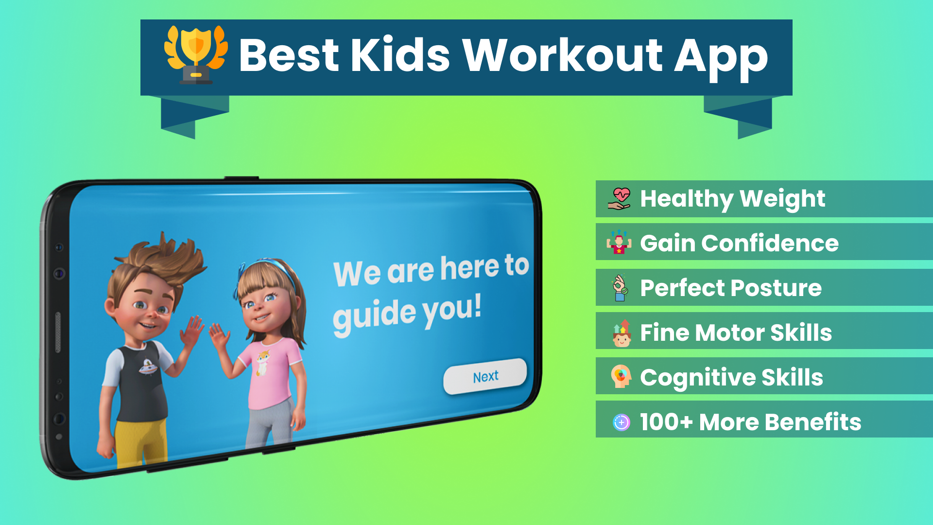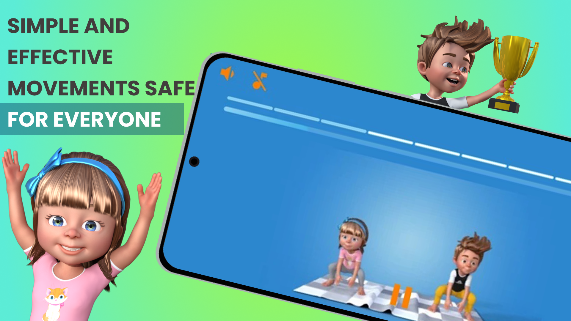 Fitness for kids - Workout for kids at home! Yes, this is the best fitness for kids app. Reach your goal faster, and have fun while doing it. Workout for kids at home 🤸 For a child you love, a perfect gift to promote their happiness and well-being. If you are searching for the best workout apps for kids, you found it! Our training program is optimal for healthy children's growth, and it's safe for everyone to use it. Fitness for Kids - Kids Exercises. Workout for kids is based on years of research and experience in the Health and Fitness industry. As unique exercise apps for kids, our primary focus is kids' health. We are focused on correct posture and spine health in a fun and safe way for everyone. 👉 Exercise together with your kid! 👉 Take a break! Spend some quality time with your child. Exercises are suitable for everyone. Both you and your child will experience the benefits! Start moving and share the joy with your kid. Whether your goal is weight loss, muscle building, back pain relief, or posture correction, reach your goals with your child! Consistency is the key. What are you waiting for? Discover three new training programs! ✔️ Unlimited FUN Workout for Kids ✔️ Posture Correction ✔️ Lose weight for Kids No matter your age, shape, size, or abilities, we offer everyone a safe experience. Enjoy the movement! 👉 Experience - Fitness for Kids We have over 20 years of experience creating safe and effective workouts for kids. Fitness for kids is a neglected field in which kids can benefit a lot. Child workout is our expertise, and we are happy to share our knowledge with you so everyone can benefit from it. 👉 Safe & Effective Kids' Exercises Our training plan combines yoga for beginners and bodyweight exercises focusing on overall well-being. Lose weight for kids exercises with a fun and effective training program! Fun At Home Workout for Kids & Family! With our experience, we developed this app to promote physical and mental health. Get fit for kids is our project where children worldwide will be able to participate. We will show you how to practice yoga and bodyweight movements suitably for 3 years and older kids. Yoga Benefits - Yoga for Kids With dynamic stretches and movements, there are many benefits in yoga for kids: ✔️ Yoga for kids is safe and effective ✔️ Yoga for weight loss ✔️ Improves posture ✔️ Improves flexibility ✔️ Strengthens back and core muscles Discover why this is considered the best workout app for kids! 👉 Kids' Fitness suitable for everyone Fitness for kids app's training program does not require equipment, 5 minutes of joy and happiness safely. Enjoy working out with your child: bodyweight exercises and yoga for losing weight, building muscles, pain relief, and posture correction. 👉 Fitness Coach A fitness coach in the app will guide workouts just for your child. Check out why we are one of the fastest-growing workout apps for kids and yoga apps for kids. Meditation for children is on our list of updates, and we will have it as a feature in the future. Our workout will help kids relax. Part of it is focused on yoga and relaxing movements. 👉 Our Mission - Healthy Kids It is health that is real wealth and not pieces of gold and silver. -Gandhi
