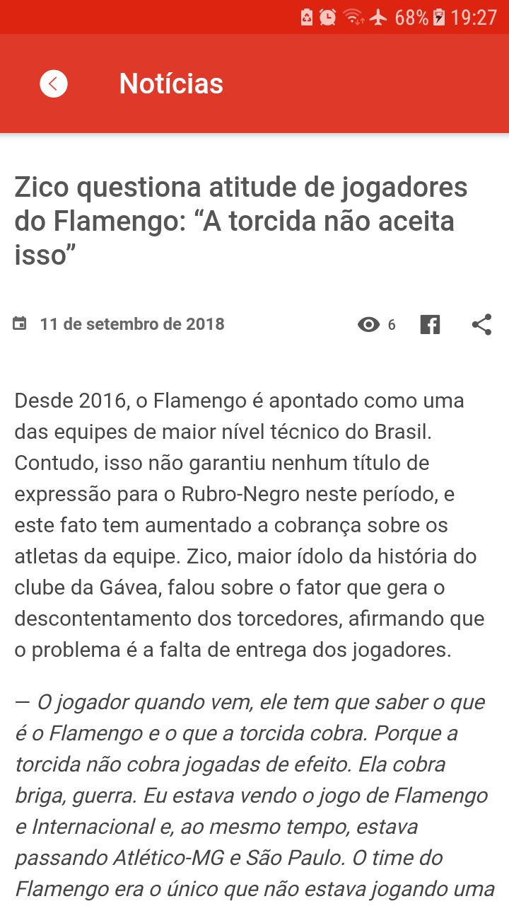 Com o APP: Flamengo TV - Notícias você terá todas as notícias do flamengo, qual a sua colocação no Brasileirão, as escalações nos jogos, melhores momentos de cada jogo e acompanhar os jogos em tempo real.