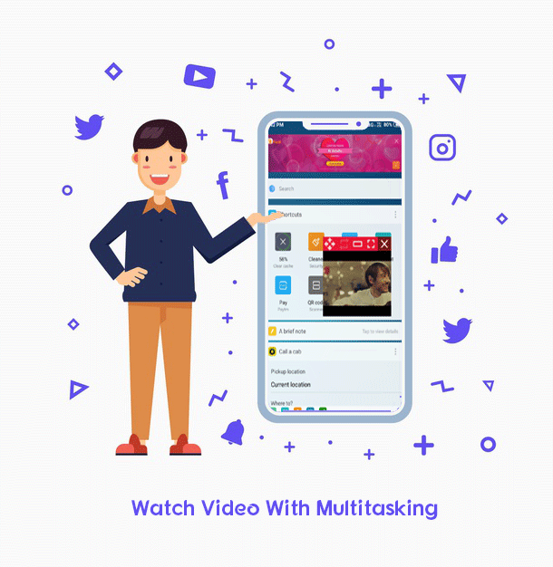 YouTube Floating Player has adjusted the size of video according to you and also change the quality of video when you watching. PlayTube Floating App support moveable video according to the device screen.