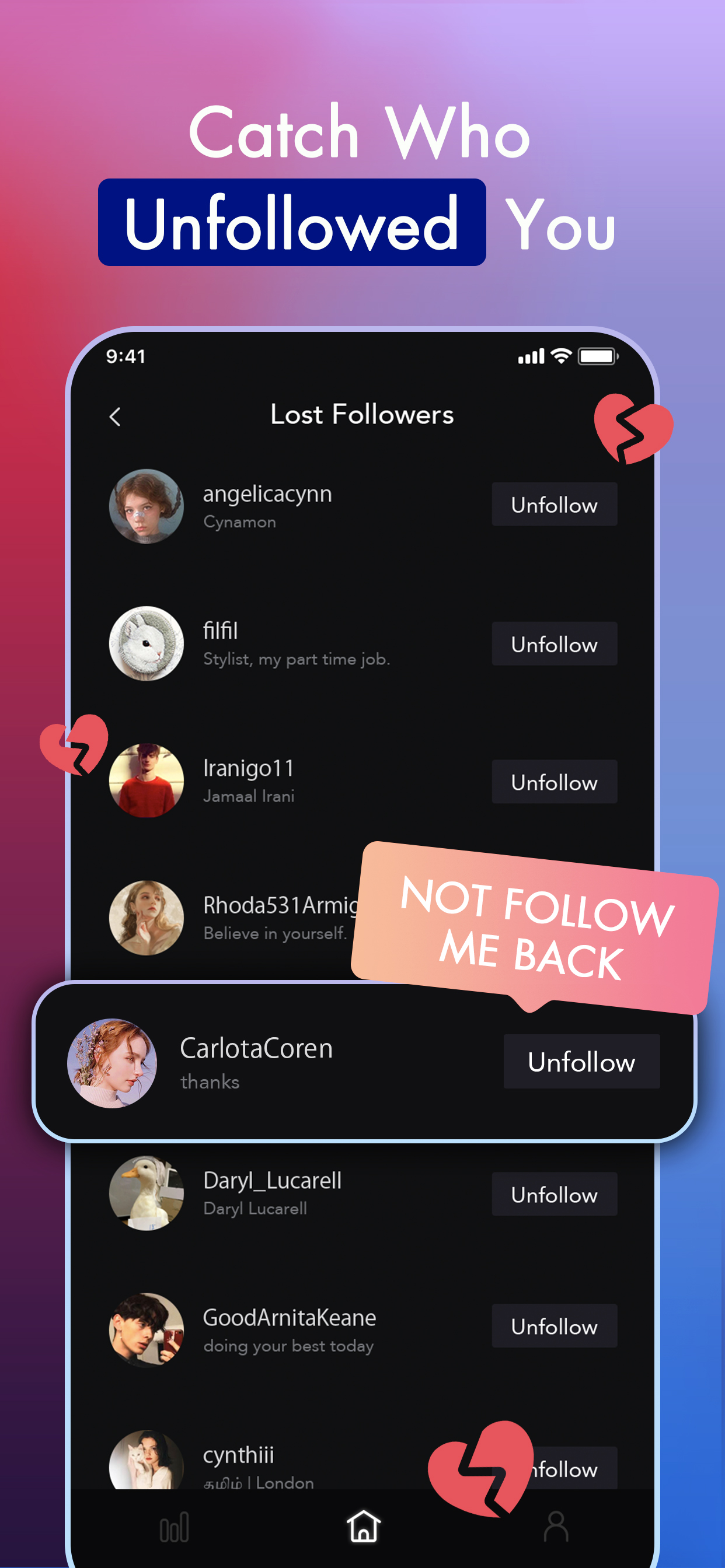 - You can view the persons who have been unfollowed you and someone who has not followed you back.