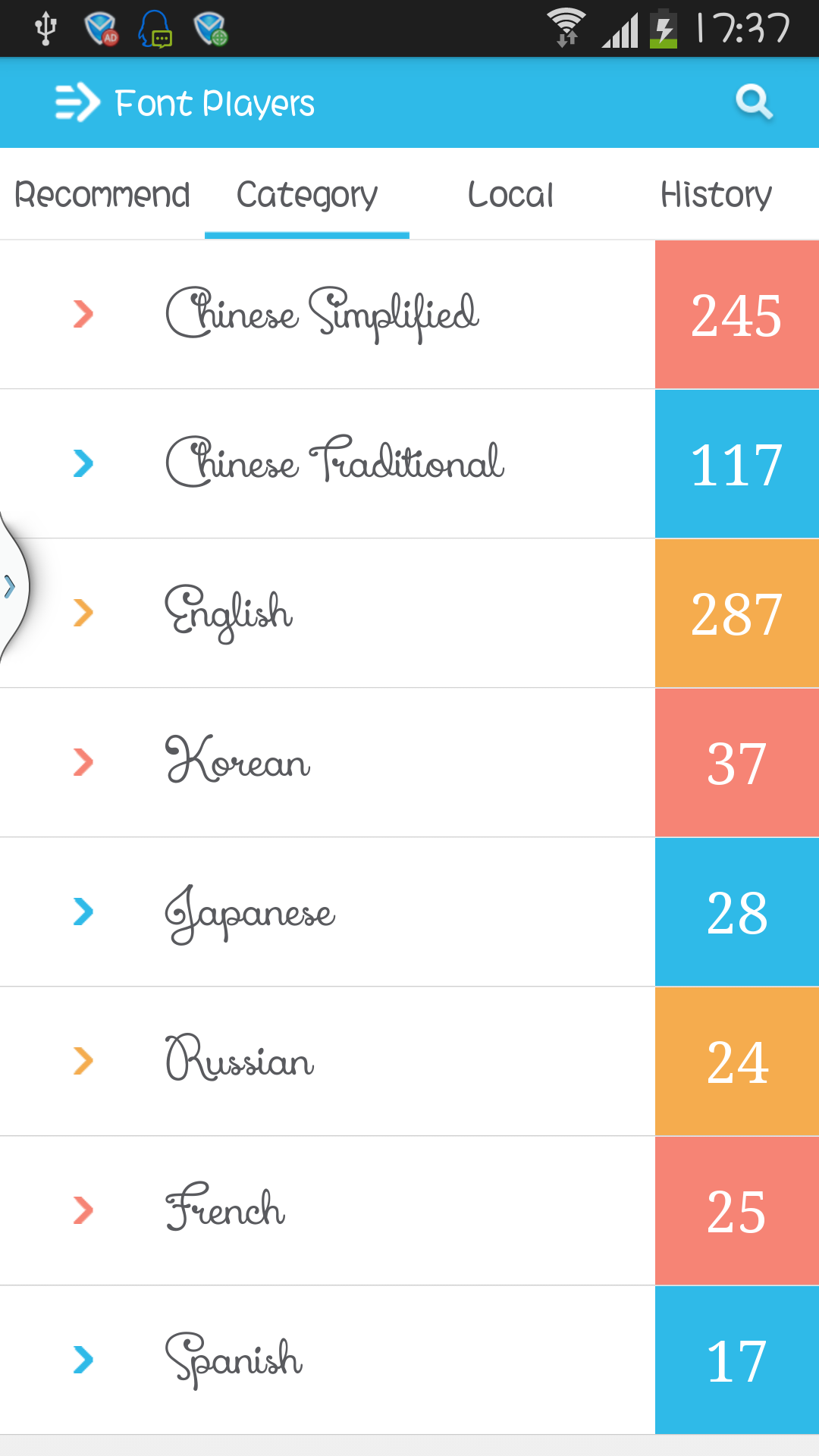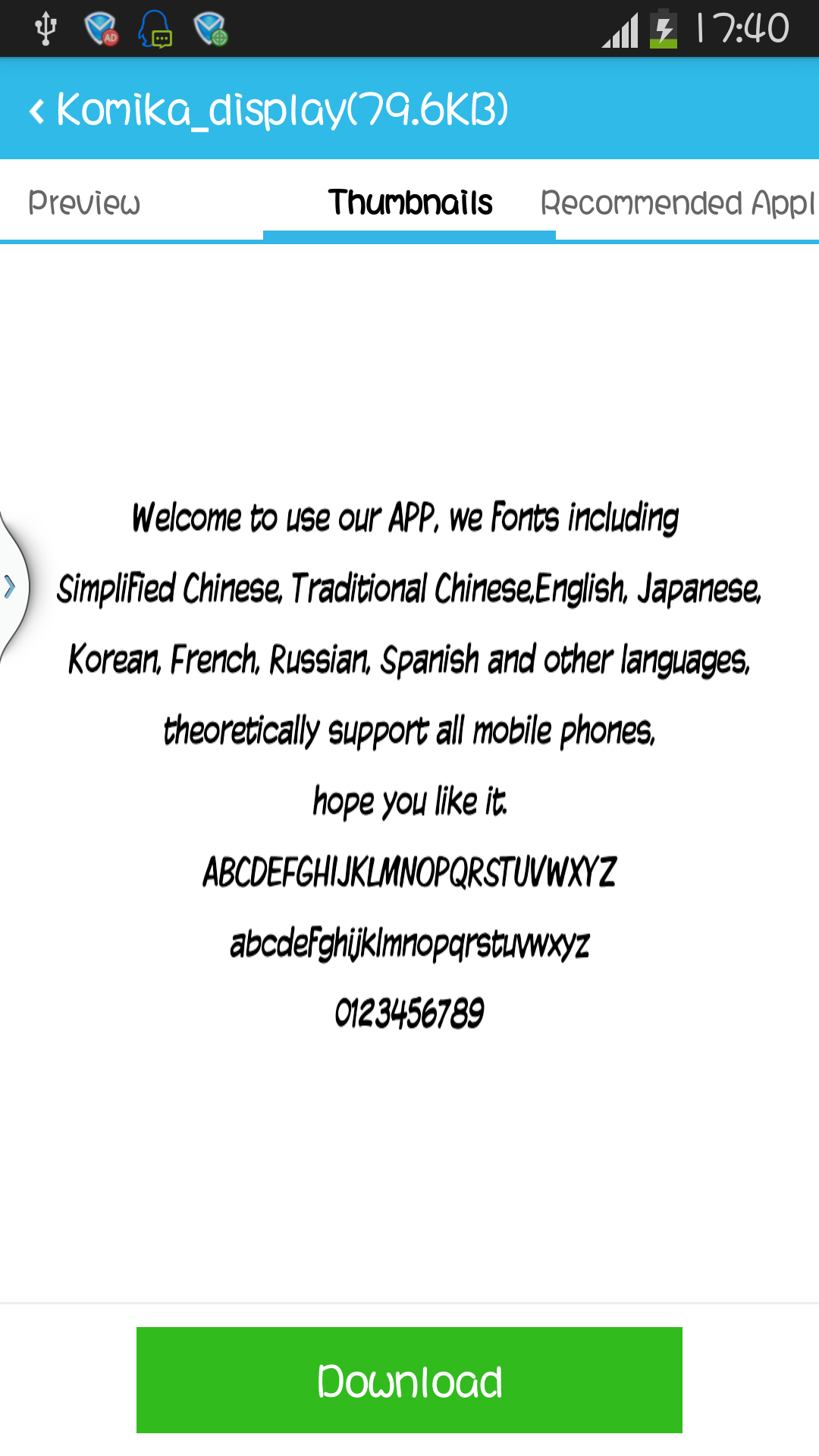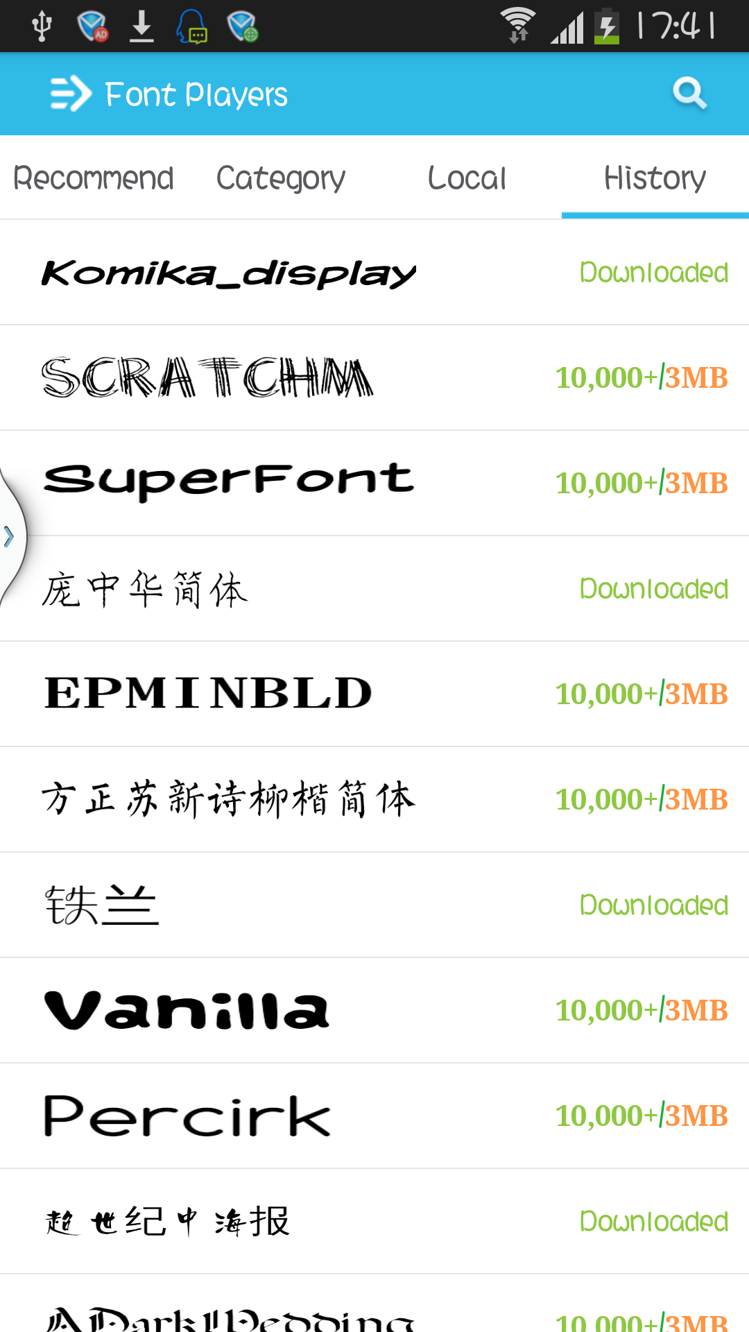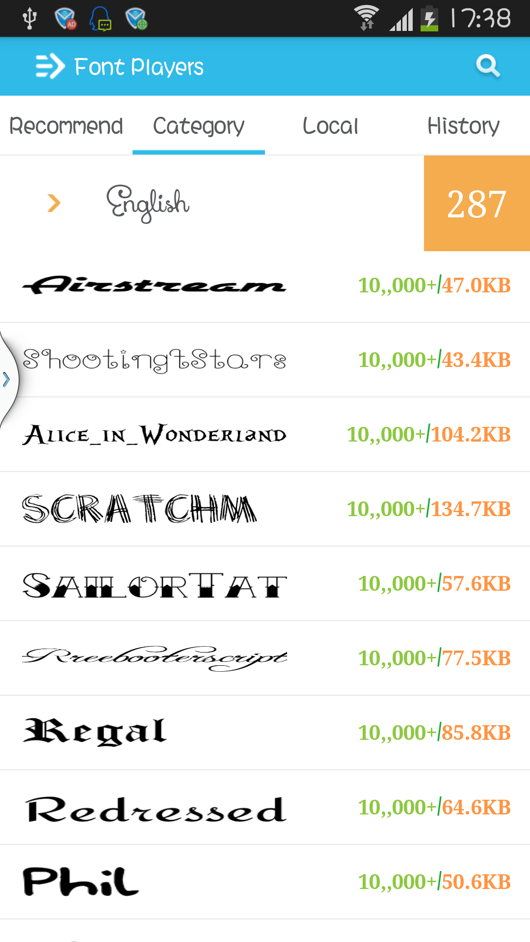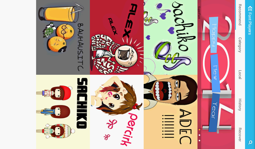 Font Players(Fonts Manager),Millions Users Like IT! The Best Font Installer on Android,which support all android phone! This app id designed to install beautful fonts on your phone.you can download and use hundreds of fonts to cutify your phones. It's supper easy to change your phone's font! Main functions: 1 support Galaxy phone tp change font including Galaxy S3,S4 NOTE NOTE2 NOTE3(No root needed) 2 Support HTC,MOTOROLA,LENOVO,HUAWEI and other phones to change font(Root needed) 3 Seven languages list including Chinese Simplified, Chinese Traditional, English, French, Korean, Japanese, Spanish, Russian 4 Support to custom your own fonts 5 Easy to operate,no tedious steps COPYRIGHT these fonts are all free fonts.I collected fonts through internet and i checked these font are fress version.if you find any commercial font on this app,please report to me.then i'll delete it immediately. Send Fonts You Want To Use I can handle Chinese Simplified, Chinese Traditional, English, French, Korean, Japanese, Spanish, Russian.If you want run some fonts on your device,please send your font to me by email.I'll update your font to this app,But donlt forget that font must be free version.when you send a font to me,you should send license information if possible 2/25 New Feature: 1.Support restore factory font; 2.Support Select download path; 3.Support clear the cache garbage; 4.Support the use of tablet; 5.Support no Sd Card Status. Fix Bug: 1.Downloads error; 2.Under certain circumstances font download error; 3.Other 18 error correction