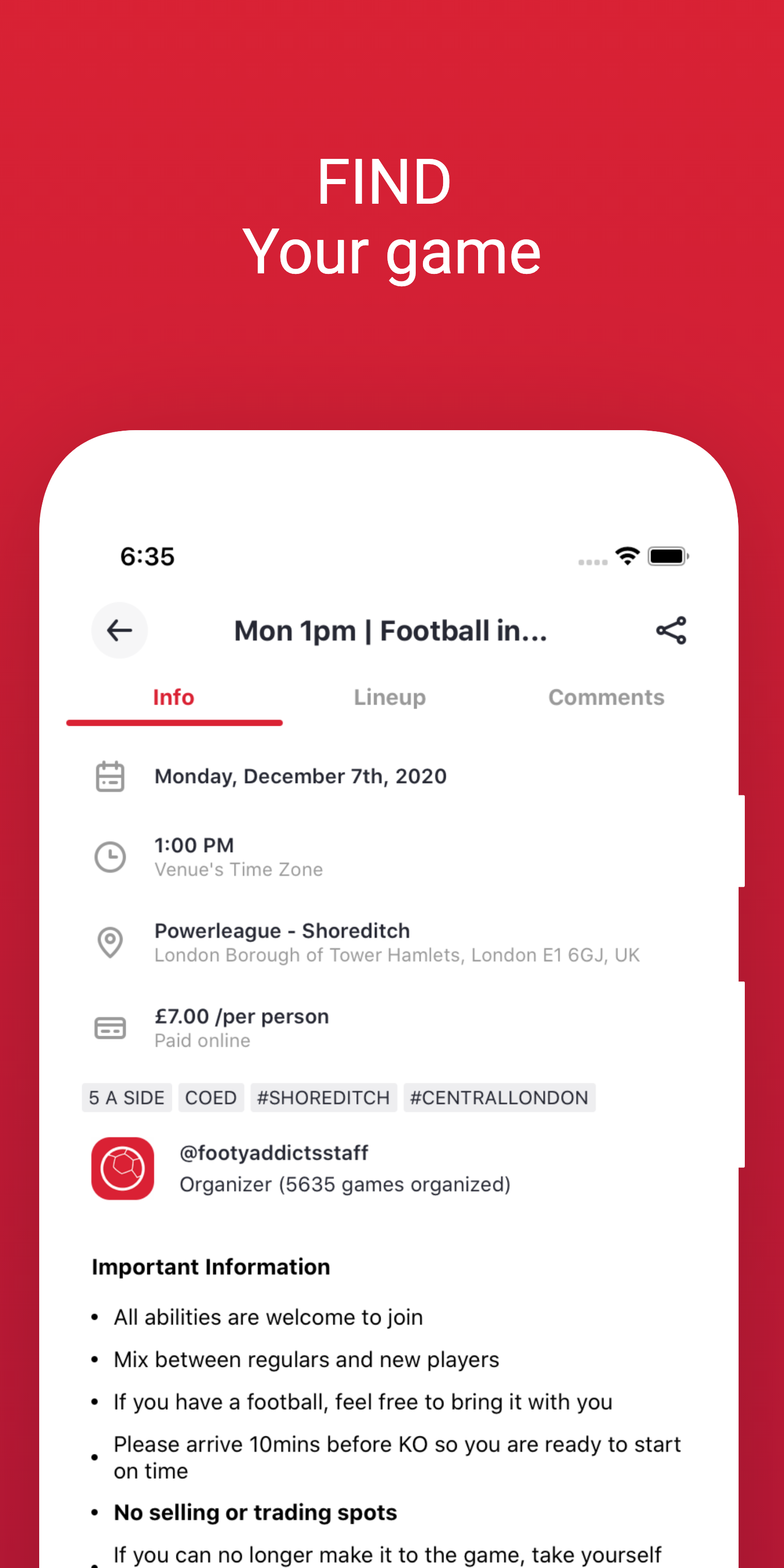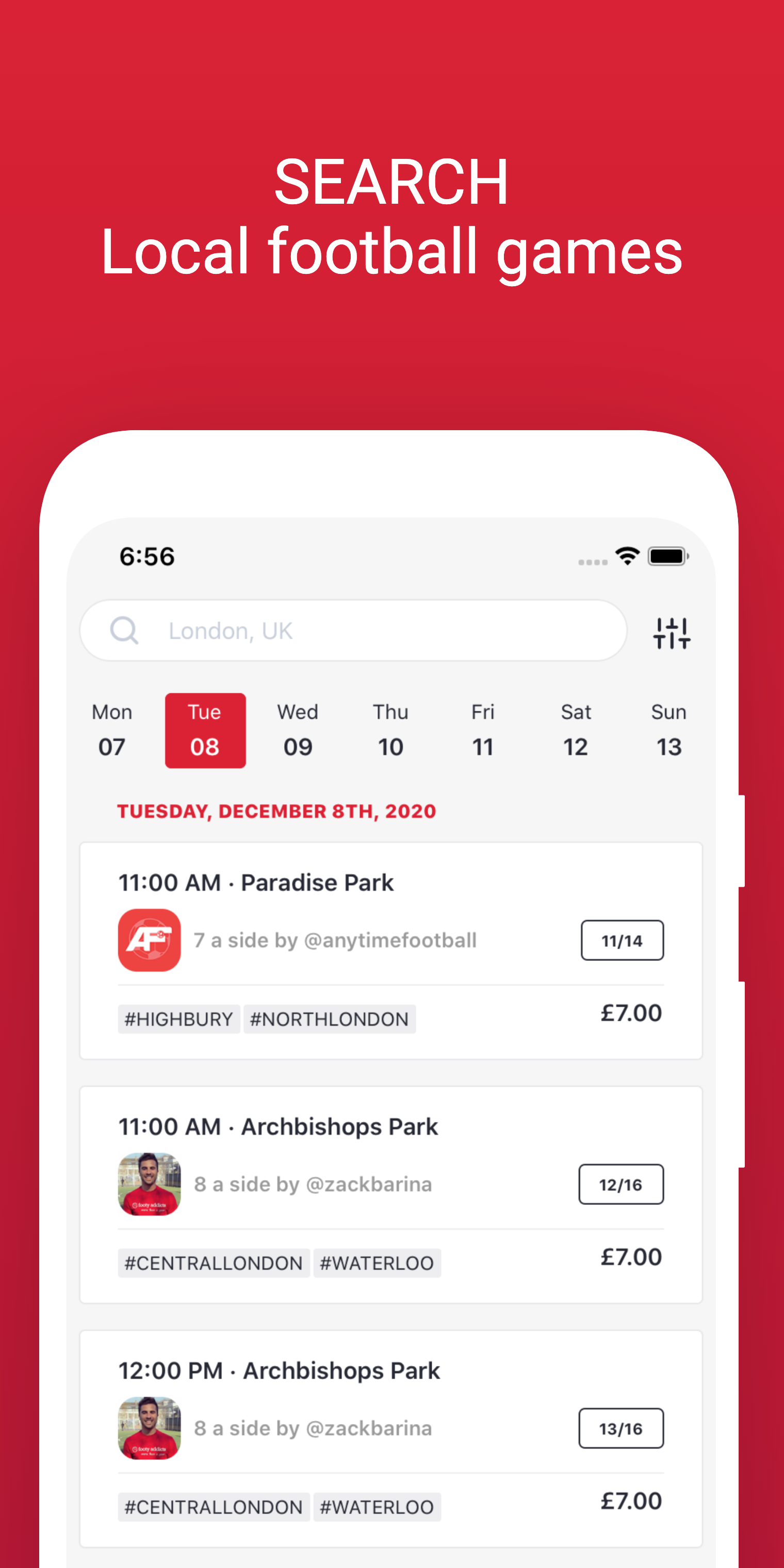 Fancy football? Do you have problems getting the numbers for your game? You just want to turn up and play? Join Footy Addicts, the social platform that connects all football enthusiasts. People use Footy Addicts to play football, organize games, socialize, keep fit and have fun! Our belief that players should have the freedom to play football, anytime, anyplace. We take away organization hassle, make football games simple. Track your football stats, meet new people play football.