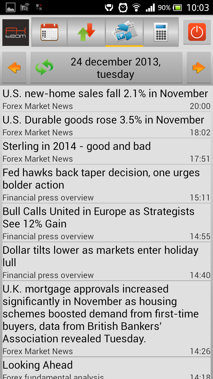 Forex economic calendar provided by FxTeam highlights the most important events in the market. We promptly update actual values online right after their release. In order to make the picture more informative, we provide you with the history of economic indicators. The application includes an easy-to-use Widget which displays the most important Forex events directly on the home screen of your device and shows event update messages. We promptly update actual values of Forex indicators online right after their release. We hope that the mobile version of FxTeam economic calendar will become your easy-to-use compass in the Forex market.