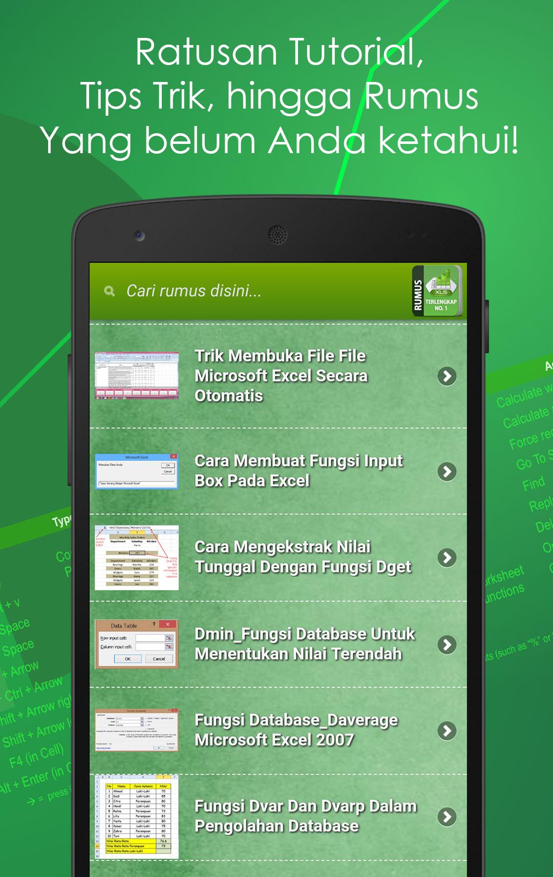Rumus Excel (Package Name: aero.rumus.excel) is developed by AERO STUDIO and the latest version of Formula Rumus Excel 1.0.0 was updated on October 28, 2019. Formula Rumus Excel is in the category of Books & Reference. You can check all apps from the developer of Formula Rumus Excel. Currently this app is for free. This app can be downloaded on Android 4.1+ on APKFab or Google Play. All APK/XAPK files on APKFab.com are original and 100% safe with fast download.