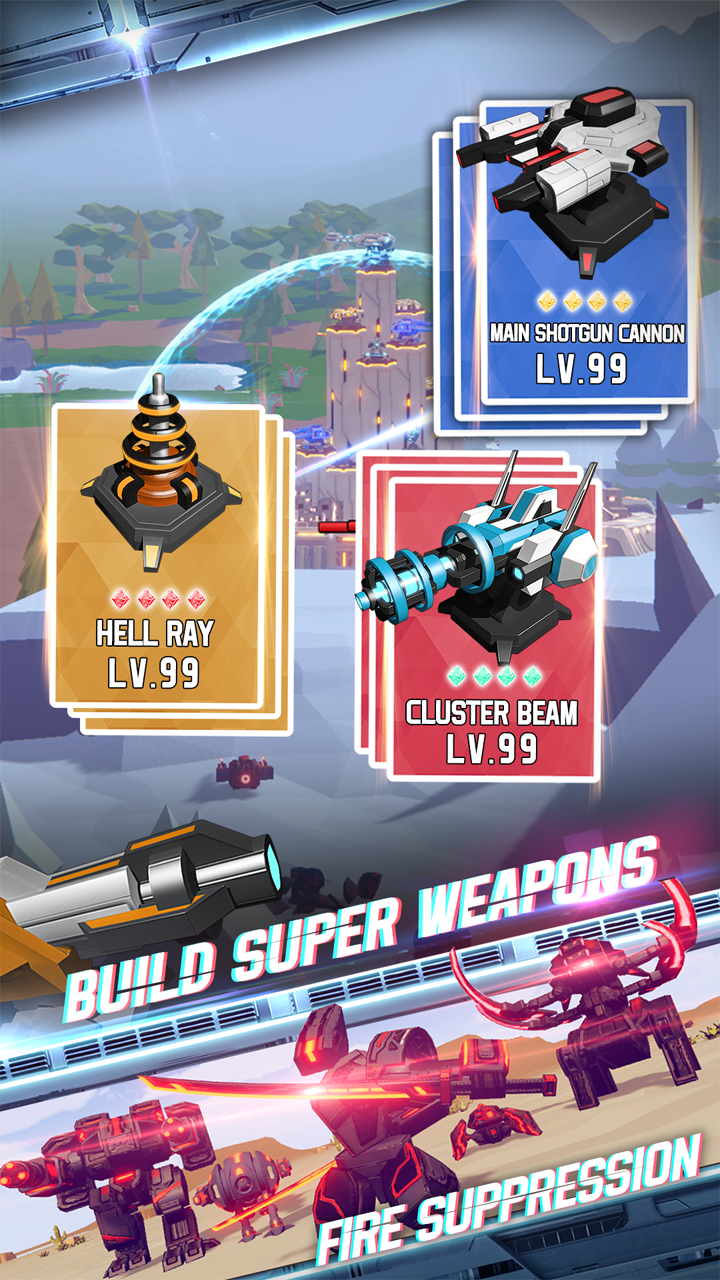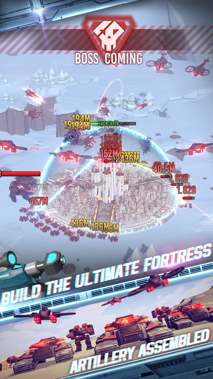 Alien machinery invaded the earth and humans were forced into desperation, spending all its resources to build the strongest fortresses. You have been appointed as the last human commander in the fort, creating and operating powerful mechs to fight the invasion of the mechanical army and reclaim the former homeland for the humans. You will upgrade and promote every turret of the defensive fortress, attack the mechanical enemies that are constantly coming forward, prevent them from attacking the city; summon various heroes, send them out of the city to fight the enemy, choose the right skill combination, give the enemy a fatal blow at the most appropriate time. As a commander, you will compete with alien machinery in a battle of strength and intelligence on this turquoise blue planet. Commander, must lead mankind to recapture homeland! [Game Features]: 1. Refreshining experience, easy opreation, invincible record 2. Hang up easily and get a lot of benefits even offline 3. Exquisite graphics, sci-fi-film immersive experience 4. Build fortress for impeccable defense 5. Collect and develop mecha heroes, combat intelligently, fire on full power 6. Free match skills, it's time to show your talents 7. Multi-scene map, glaciers, deserts, forests, unpredictable battlefields, waiting for your challenge!